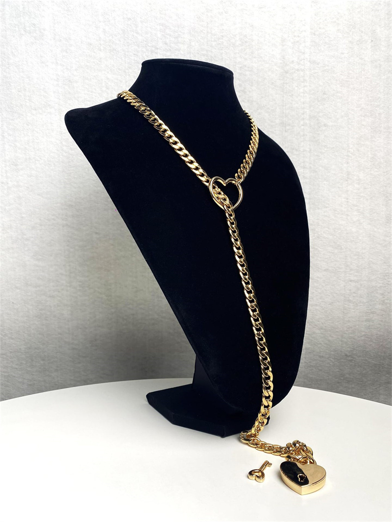 The Fashion Jewelry 2024 Slip Chain Necklace is designed to blend style and functionality, featuring a unique heart O-ring and a Cuban link chain. This long necklace is perfect for women who want to make a statement with their accessories, combining punk rock and gothic aesthetics for a trendy look. The adjustable heart-shaped lock core with a key adds a playful and romantic touch to this versatile piece.