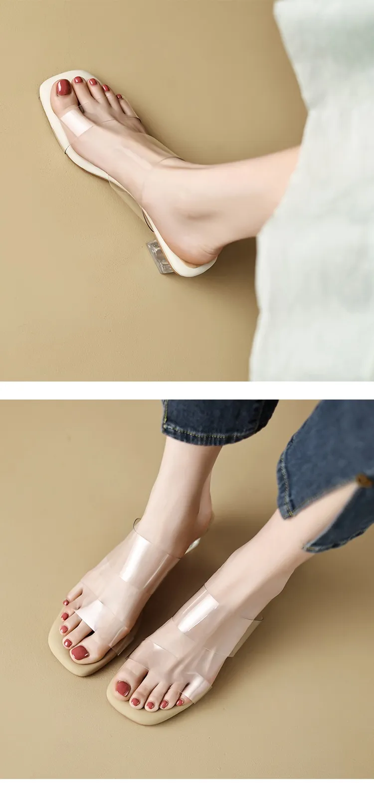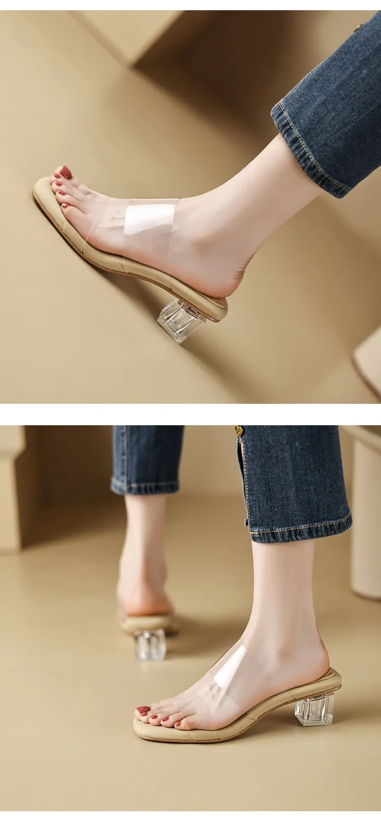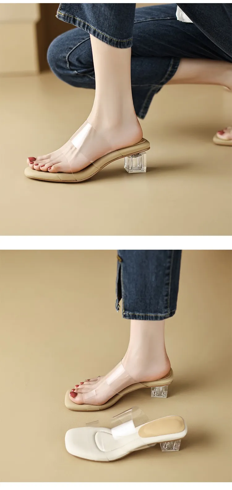 What sets the Slip-on Sandals Women's Summer Wear Crystal Shoes Chunky Heel apart is their stunning crystal embellishments. These eye-catching crystals are carefully arranged to add a touch of sparkle to your step, elevating your style effortlessly. The reflective crystals catch the light beautifully, giving the sandals a glamorous look that will turn heads wherever you go.