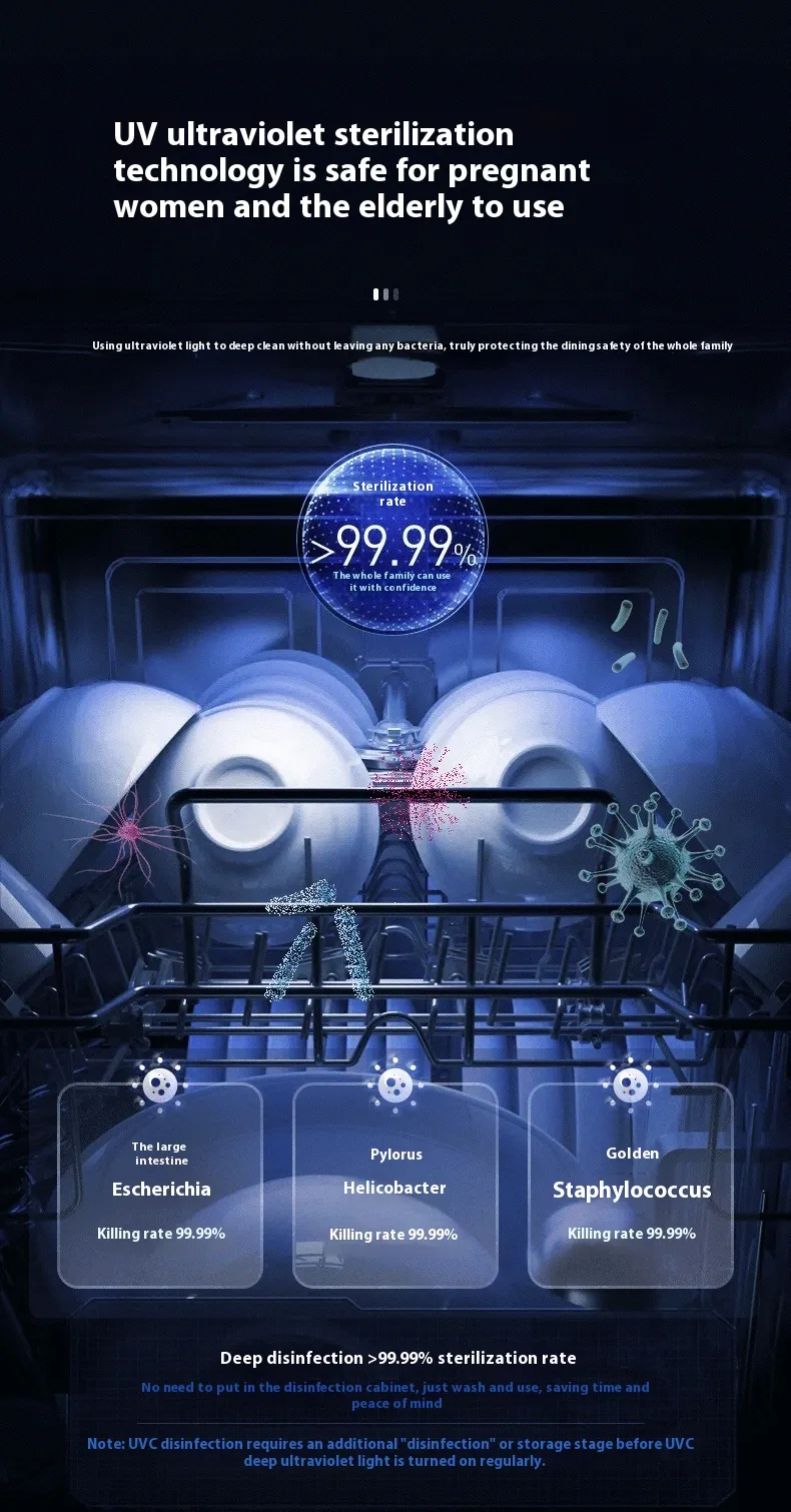 With its quiet operation, you can run the desktop dishwasher without disrupting your daily activities. The machine works efficiently, cleaning your dishes quickly and quietly, so you can go about your tasks without any distractions.