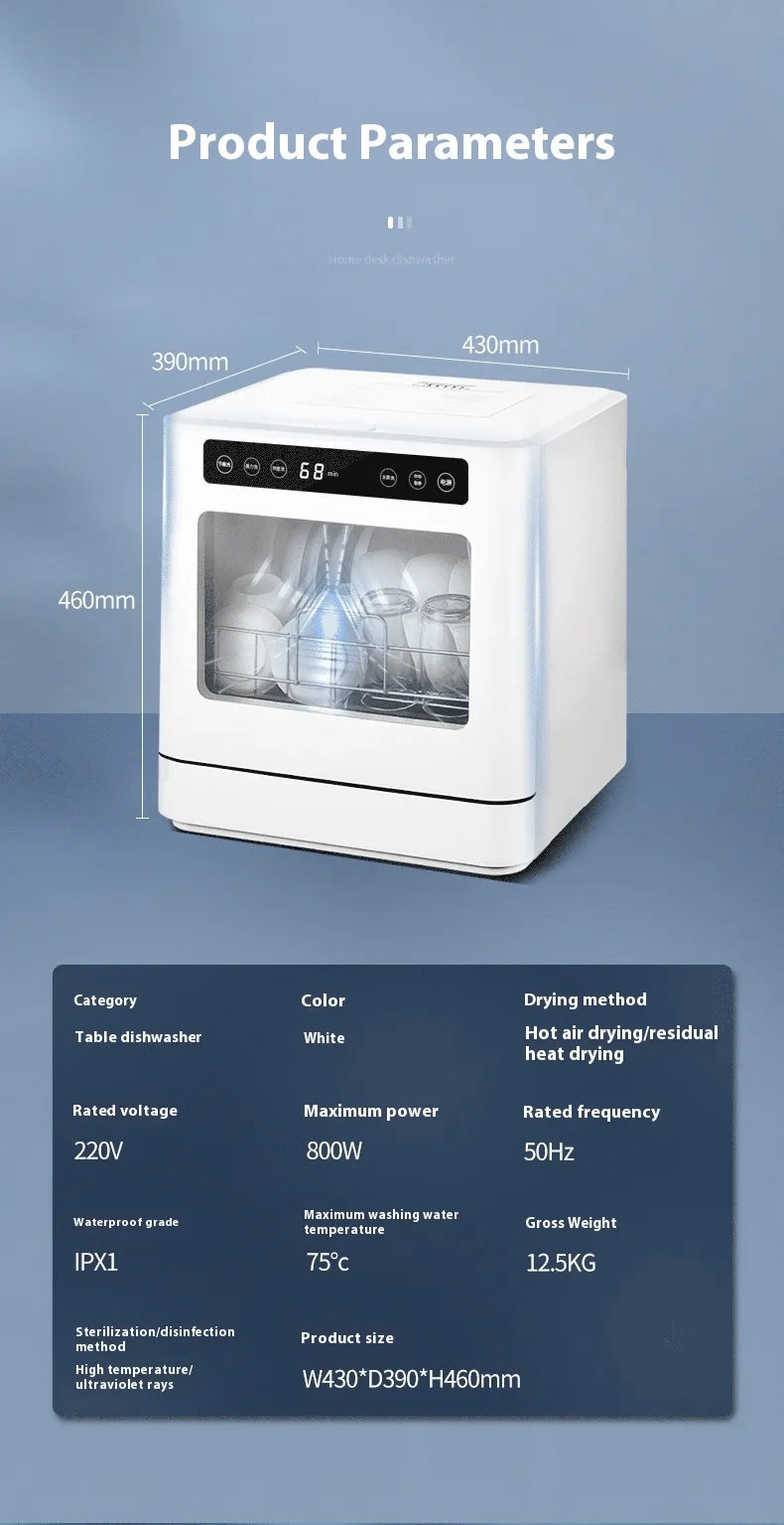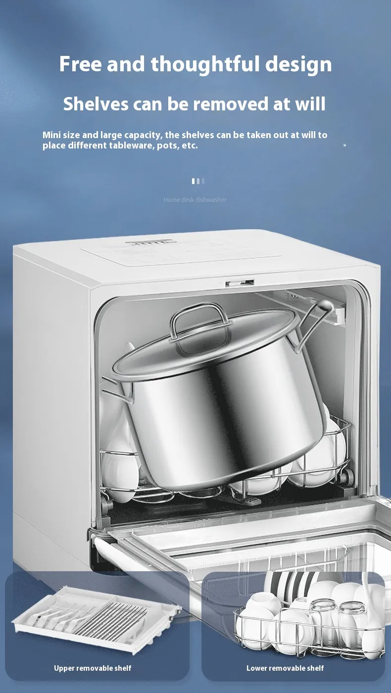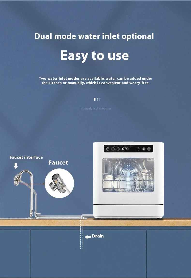 Make dishwashing a breeze with the Small Desktop Household Installation-free Automatic Dishwasher. Designed to fit perfectly in compact kitchens, this installation-free dishwasher delivers the convenience and efficiency of a full-sized dishwasher in a small, easy-to-use unit. Whether you’re living in a small apartment, a studio, or simply want a portable cleaning solution for your home, this automatic dishwasher is the perfect choice.