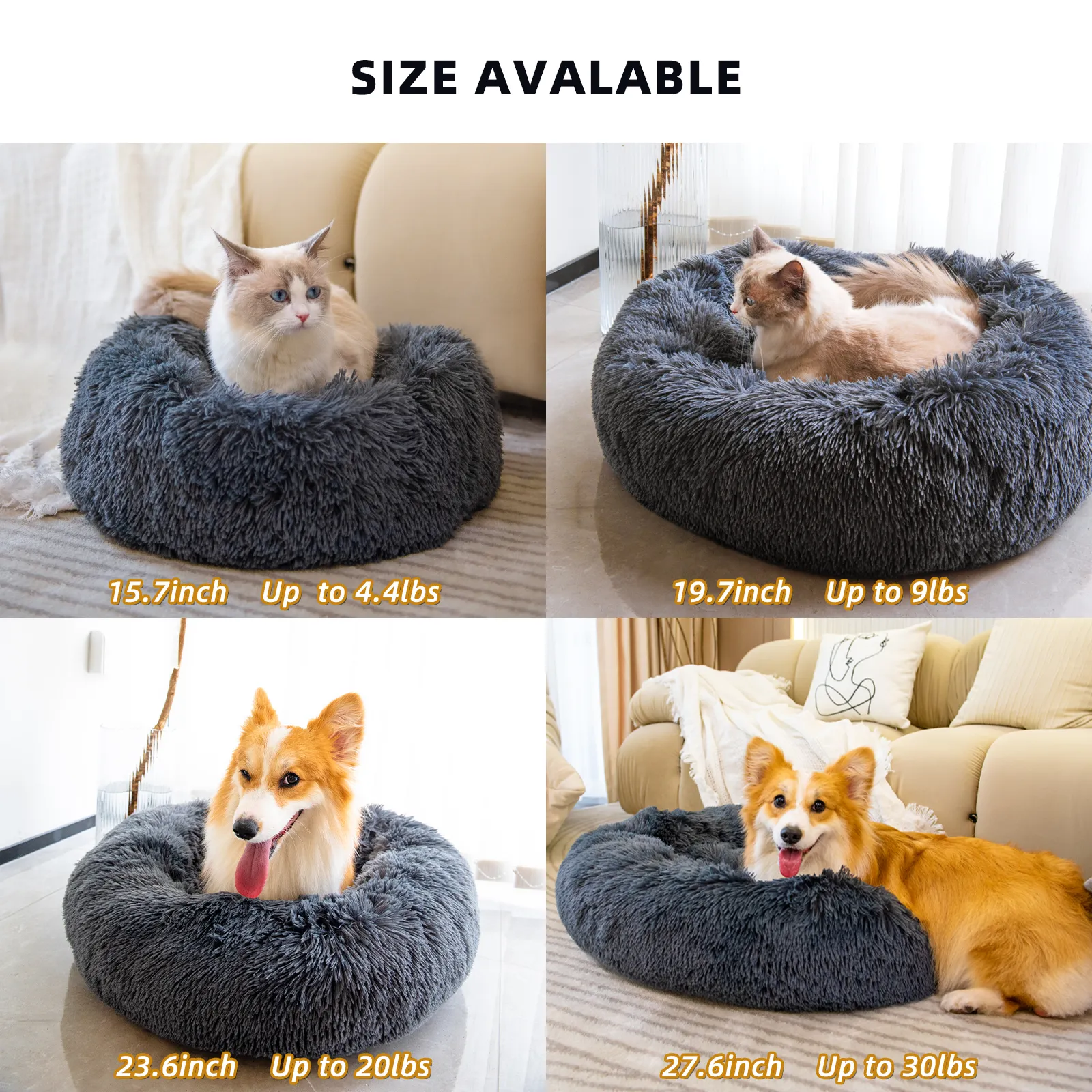 Convenient: The non-slip pet donut bed is surrounded by soft fabric and it is fluffy and soft to the touch.It is convenient to put in your