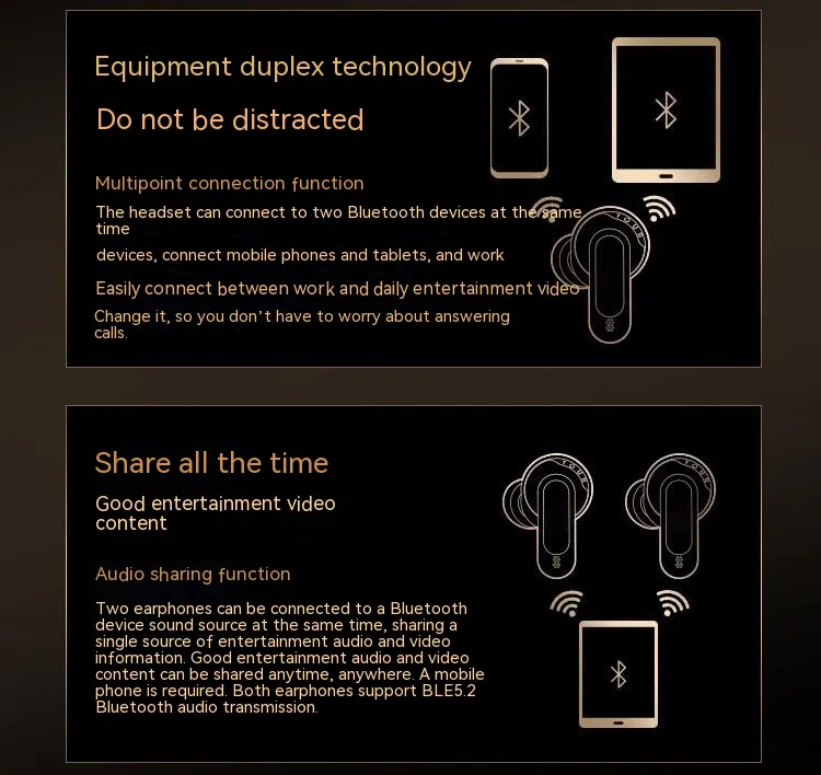The headset can easily connect to multiple devices at once, allowing you to switch between your phone, tablet, or laptop without the need to disconnect and reconnect. This makes it ideal for multitasking or for those who use multiple devices for work, gaming, and entertainment.