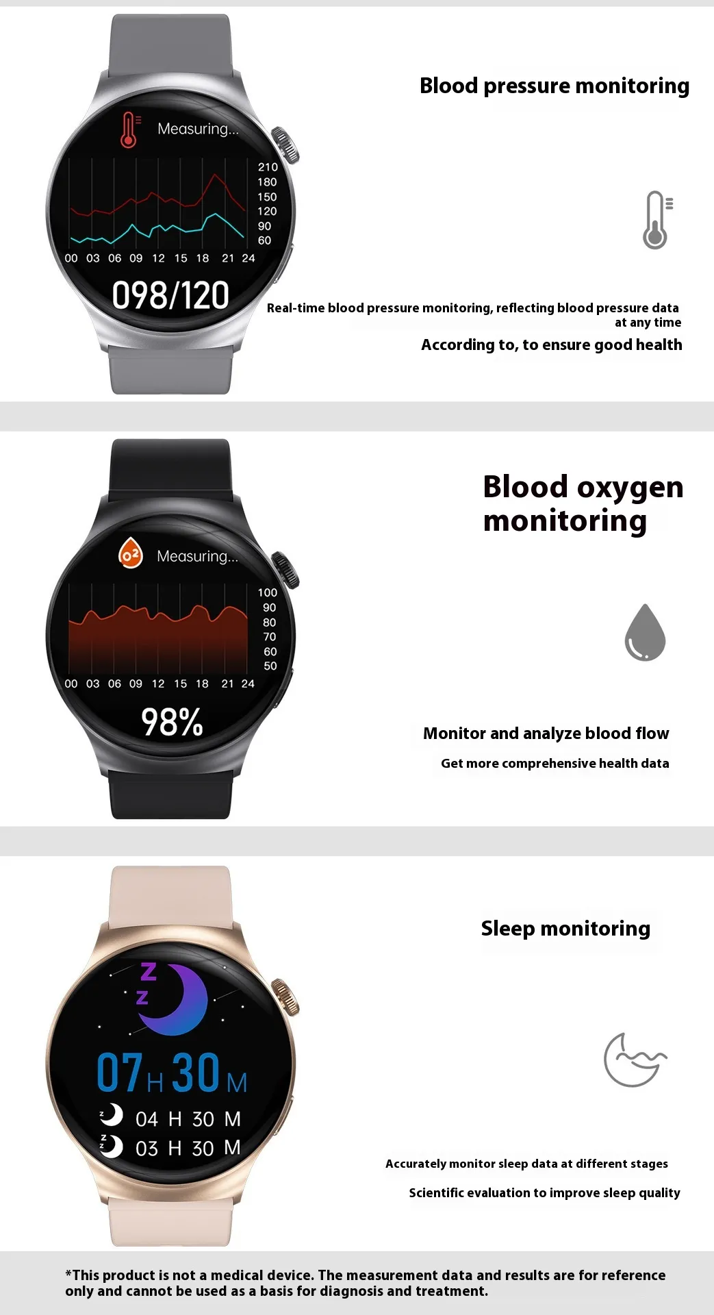 Track your heart rate and blood pressure in real time, giving you essential insights into your cardiovascular health. This smartwatch helps you stay on top of your well-being and provides peace of mind with continuous monitoring.