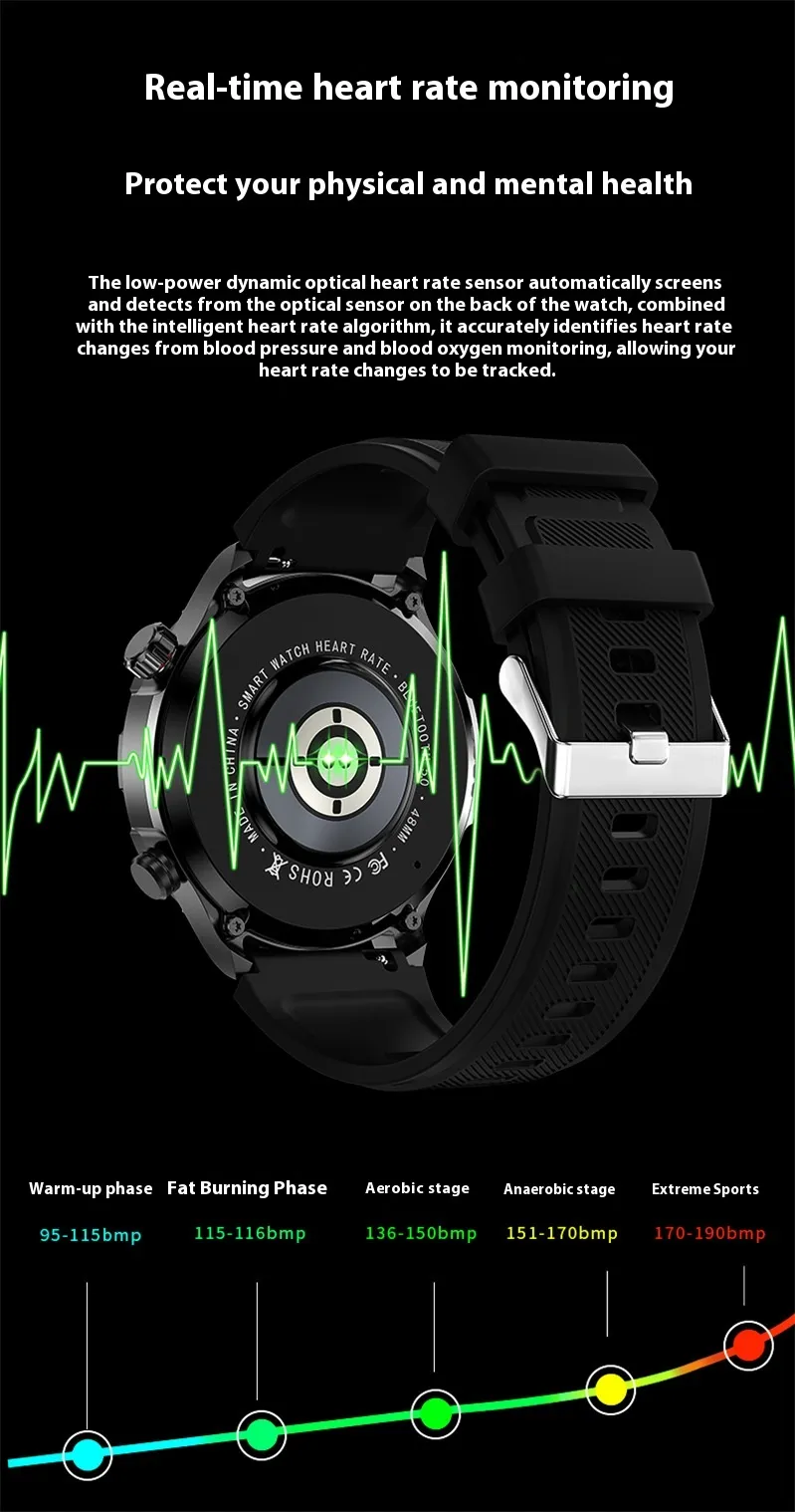 The real-time heart rate monitoring feature ensures that you stay within safe and effective heart rate zones during physical activities. This data is essential for maintaining cardiovascular health and optimizing your workout intensity.