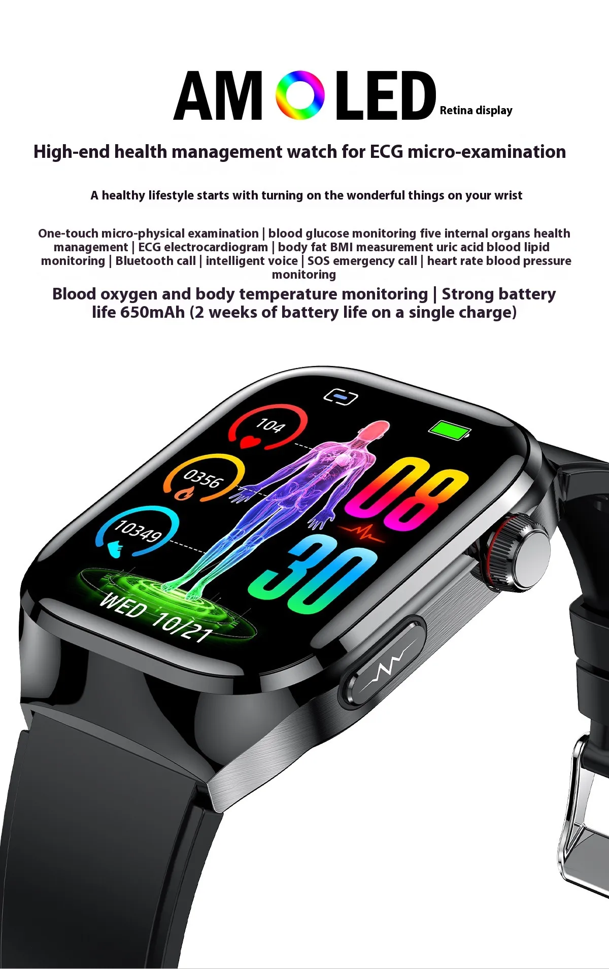 In addition to health monitoring, the smartwatch features Bluetooth calling, allowing you to make and receive calls directly from your wrist. The large, easy-to-read display shows all your key health data in a clear and concise format, making it simple to track your progress. Whether you’re concerned about your cardiovascular health, blood sugar levels, or need a convenient way to stay connected, the Smart Watch Micro Physical Examination delivers everything you need in a stylish, all-in-one device.