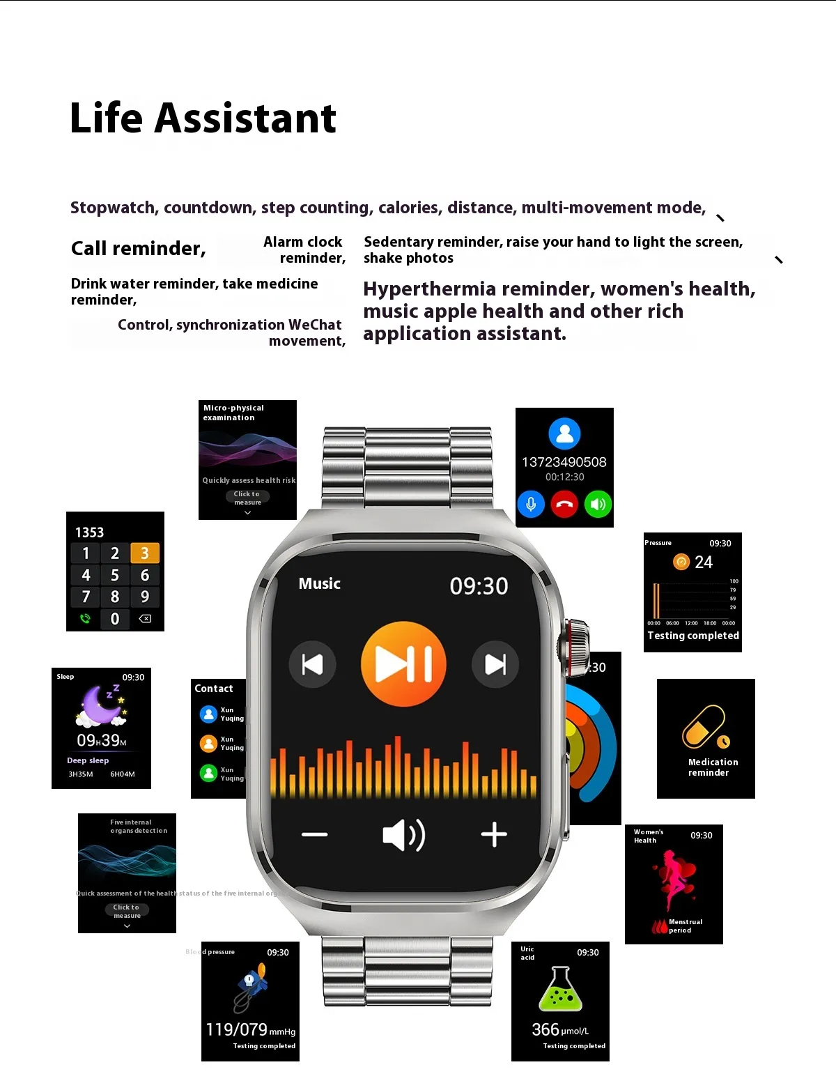In addition to health metrics, the Bluetooth calling feature ensures that you stay connected on the go, making it the ideal smartwatch for those with busy lifestyles. Whether you're concerned about your metabolic health or want a convenient way to stay connected, the Smart Watch Micro Physical Examination is a smart choice that combines health and communication features in one stylish, ergonomic device.