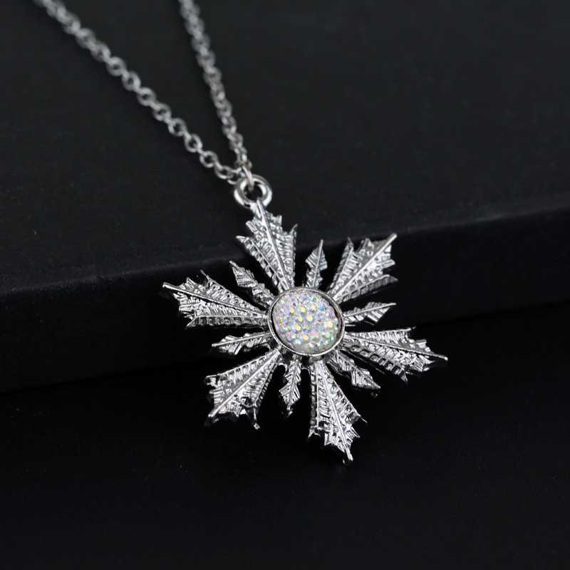 The pendant’s delicate snowflake design captures the natural symmetry and elegance of snowflakes, making it an eye-catching piece that adds a touch of winter charm to any outfit.