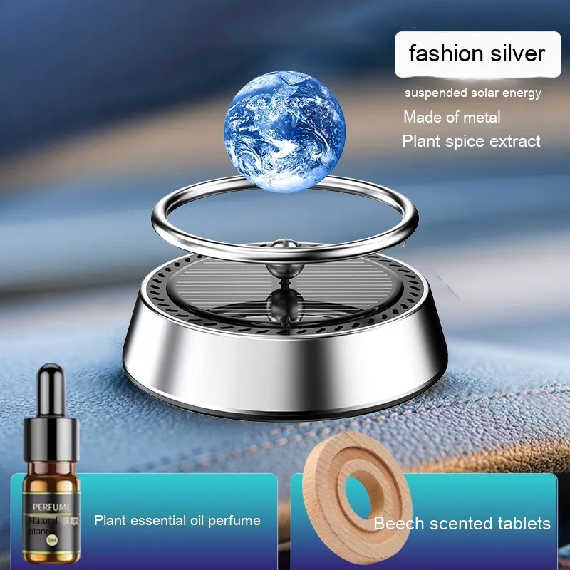 Enhance your car's ambiance with the Solar Energy Rotating Car Aromatherapy Ornament, a stylish and functional interior accessory made from premium aluminum alloy. This unique car decoration uses solar power to rotate smoothly, adding a touch of sophistication to your dashboard while filling your car with pleasant fragrances. With no need for batteries or wires, this eco-friendly ornament harnesses sunlight or indoor light to keep spinning, offering a blend of aromatherapy and elegant decor.