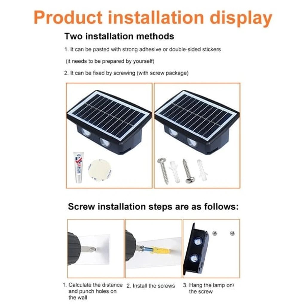 Solar lights can be installed on porches, gardens, porches, patios, garage doors, sheds, fields, barns, fences, etc.