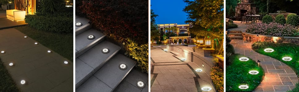 - 💡Durable Waterproof Solar Disc Light: Equipped with a stainless steel lamp shells, waterproof durable design, and external waterproof switch, these solar buried lights are durable enough to withstand harsh weather.