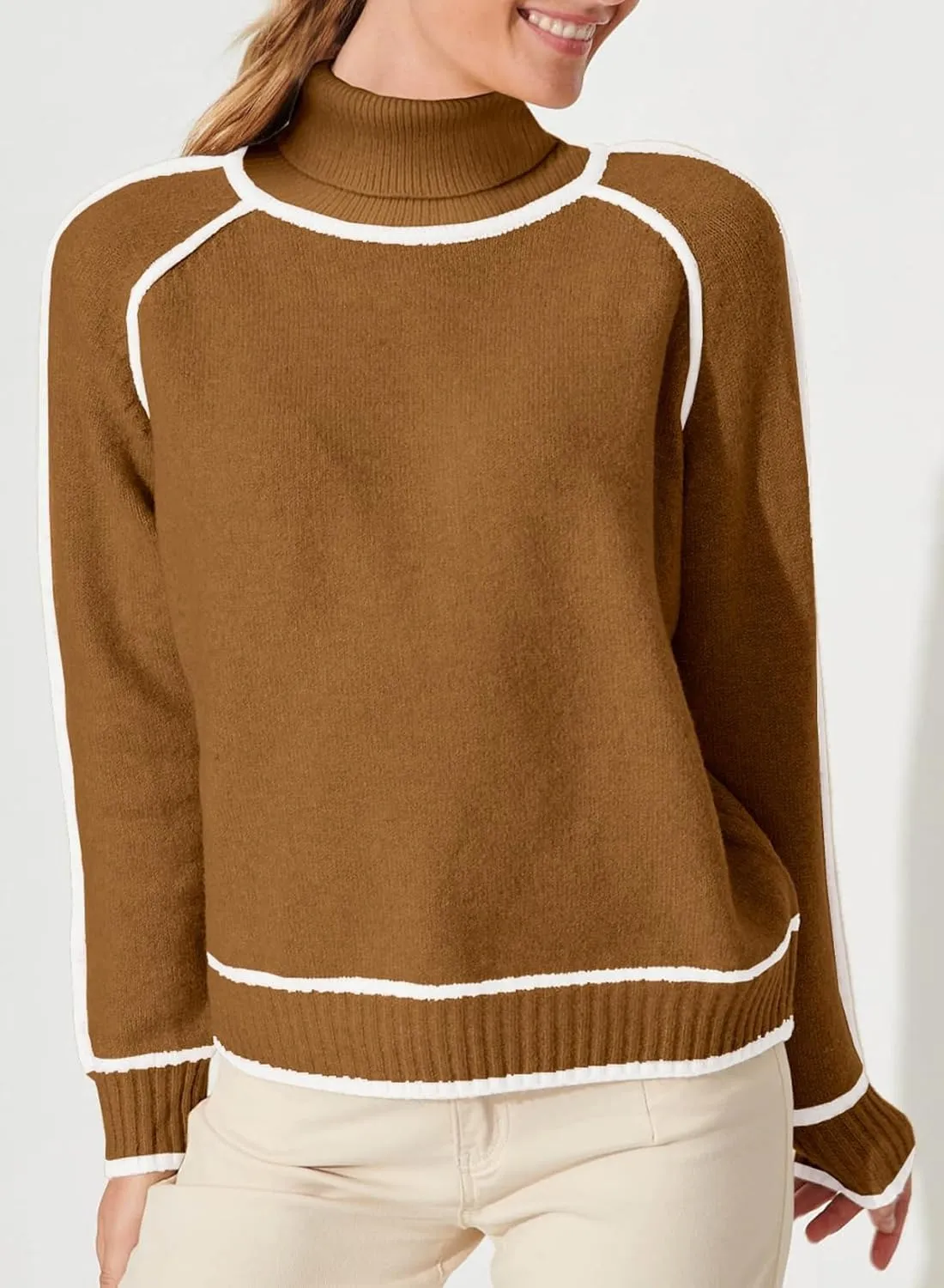 This solid color, high-neck knit top offers both style and comfort, making it a versatile addition to any autumn or winter wardrobe.