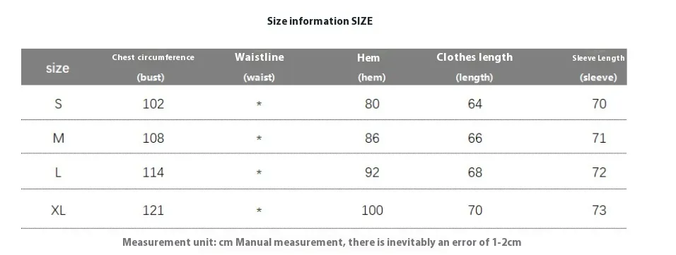 Note: 1. Asian sizes are 1 to 2 sizes smaller than European and American people. Choose the larger size if your size between two sizes. Please allow 2-3cm differences due to manual measurement. 2. Please check the size chart carefully before you buy the item, if you don't know how to choose size, please contact our customer service. 3.As you know, the different computers display colors differently, the color of the actual item may vary slightly from the following images.
