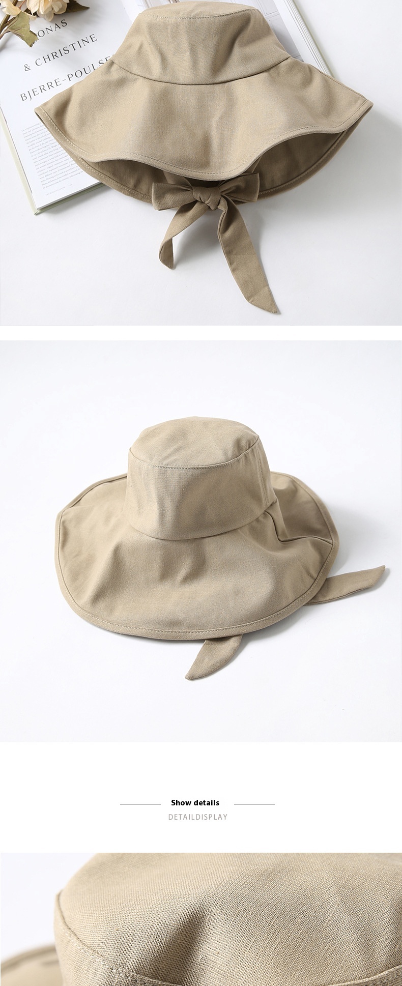 Solid Color Foldable Big Brim Lace-up Hat