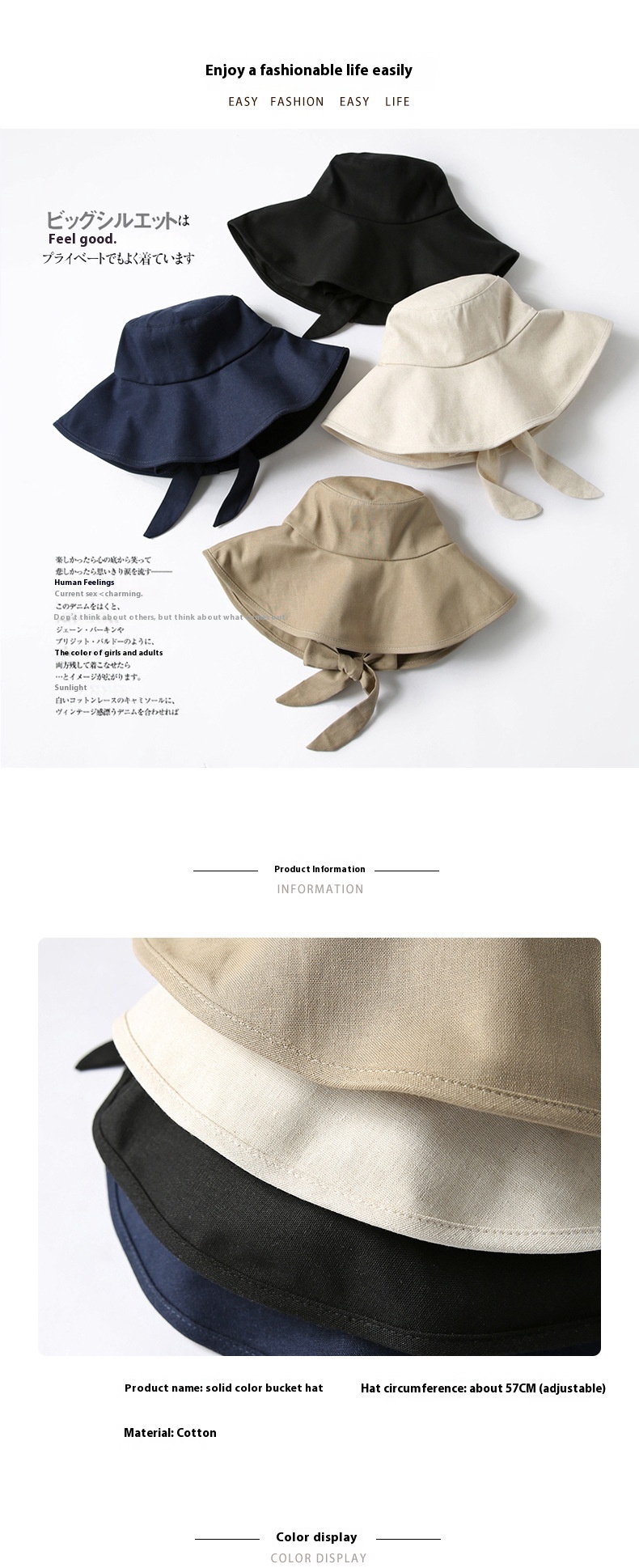 Women's Fashion Bucket Hat Japanese Foldable