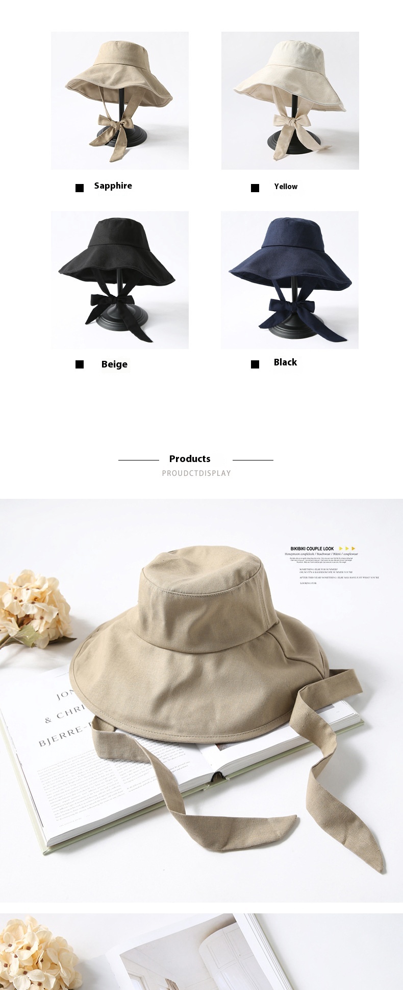 Japanese Elegant Sun Hat Ribbon Bow