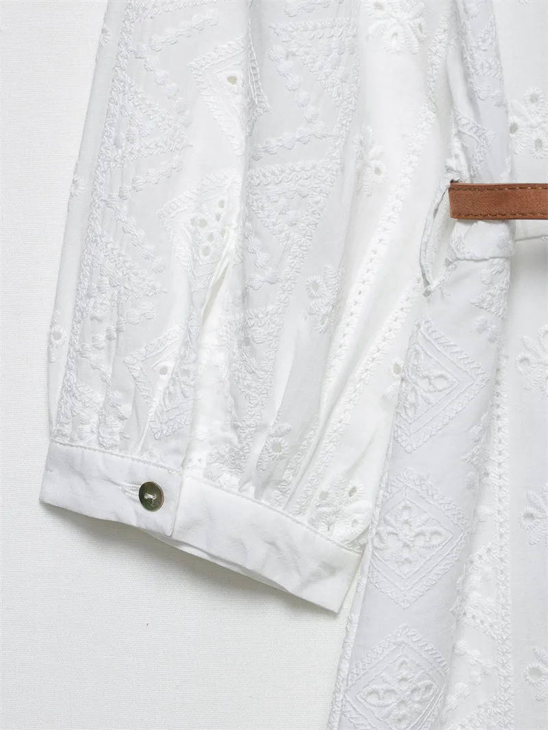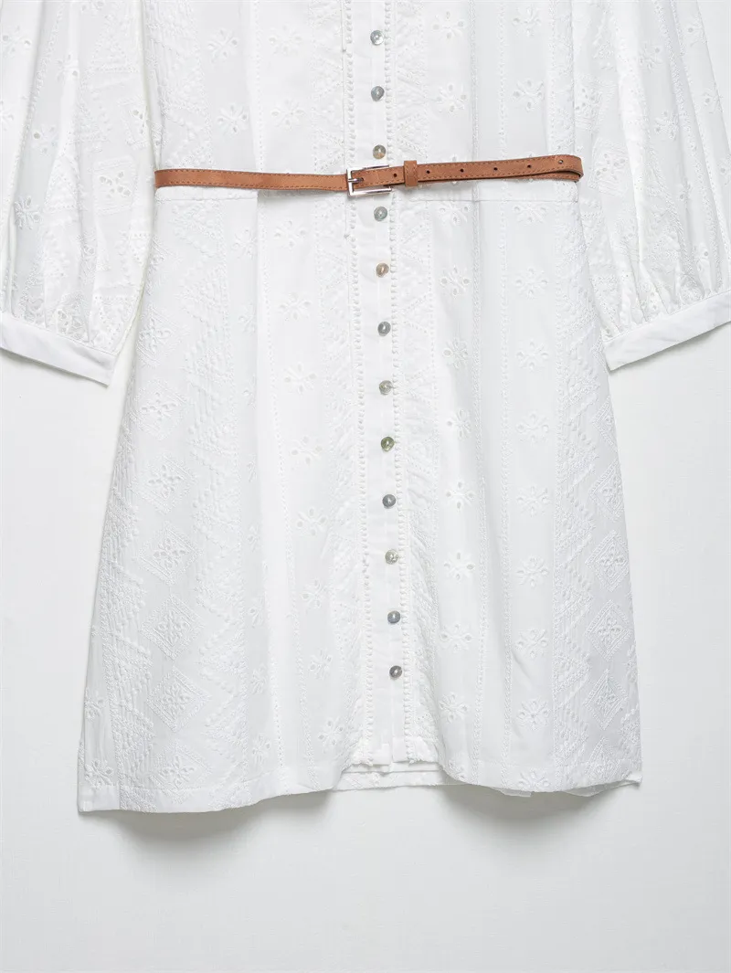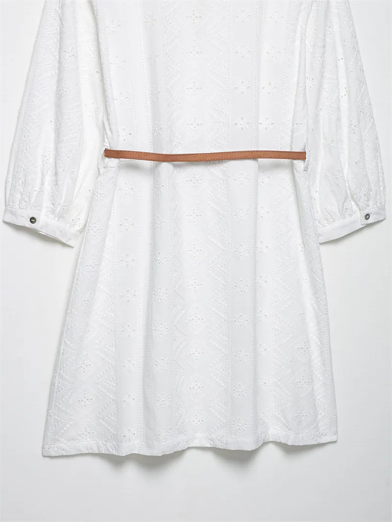 Solid Color Hollow Embroidery Mini Dress – Chic, Elegant, and Fashion-Forward