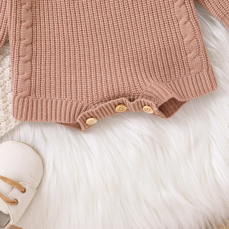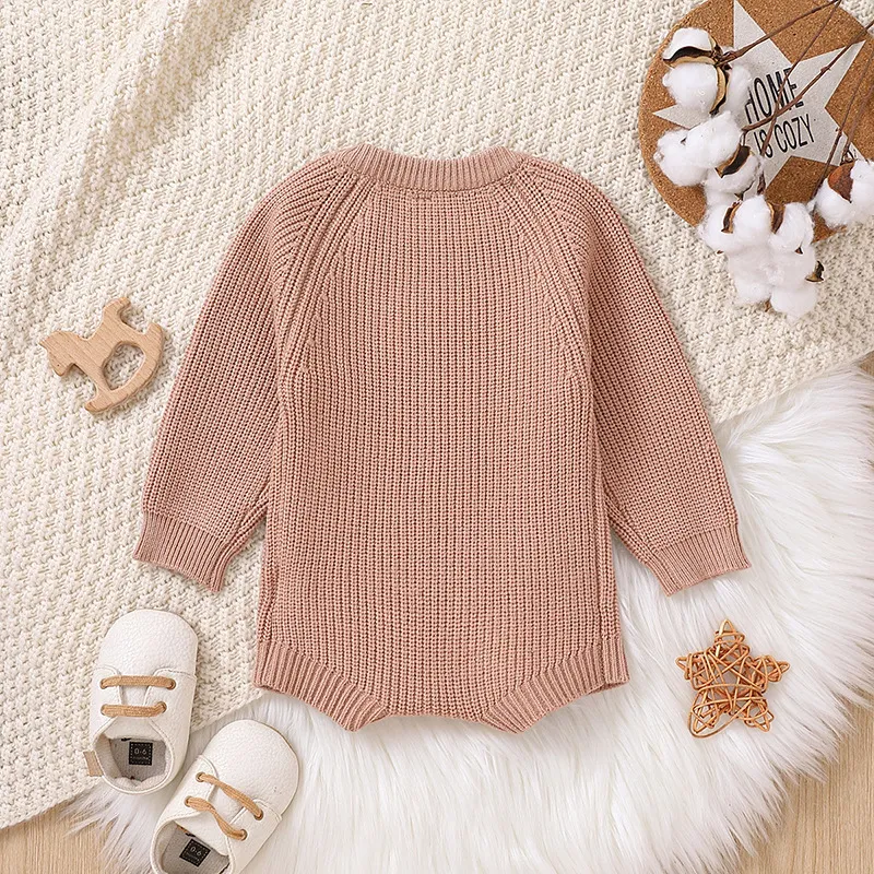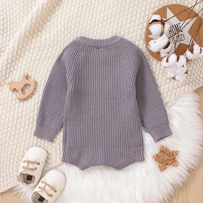 H1: Cozy Solid Color Long Sleeve One-piece Sweater Keep Baby Warm Romper