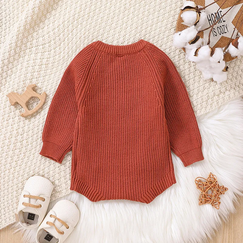 Solid Color Long Sleeve One-piece Sweater Keep Baby Warm Romper Romper