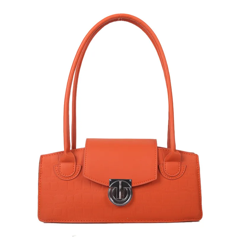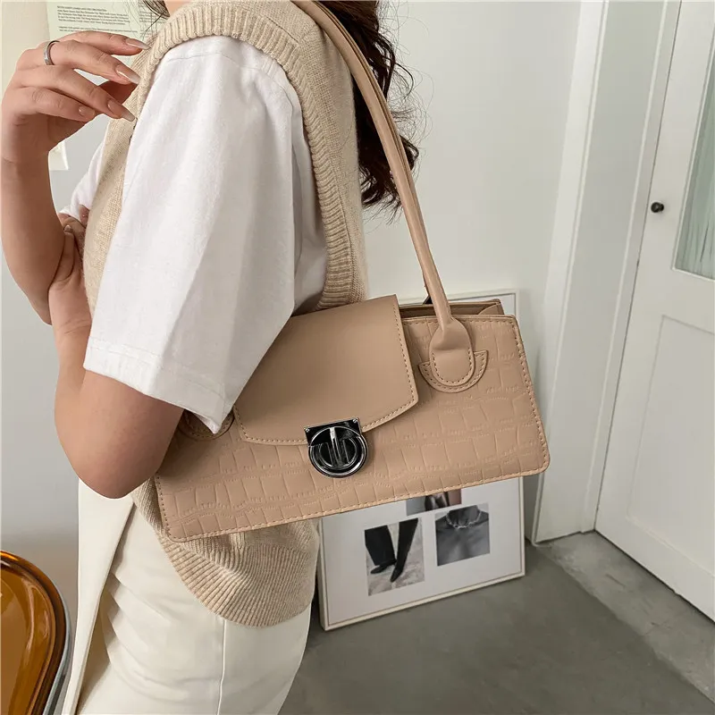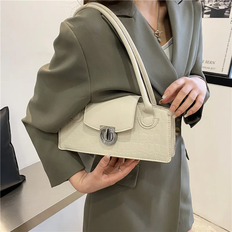 Solid Color Shoulder Contrast Color Western Style Lock Small Square Bag