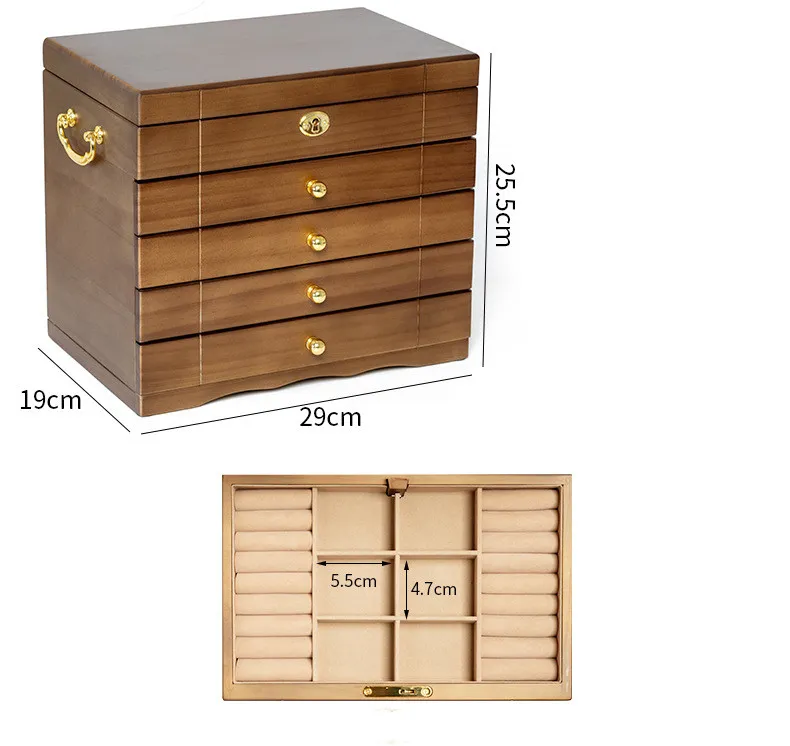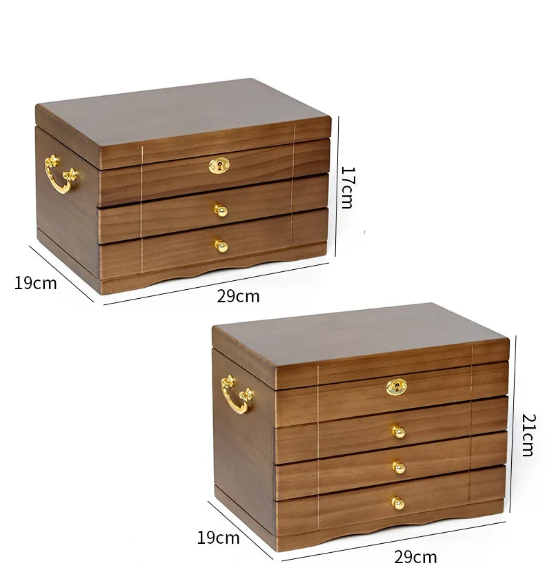 Solid Wood Jewelry Box Retro With Lock Wooden Storage Exquisite