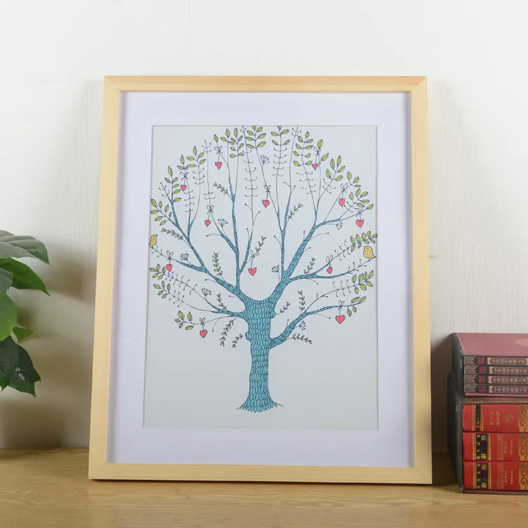 Solid wood photo frame hanging on the wall