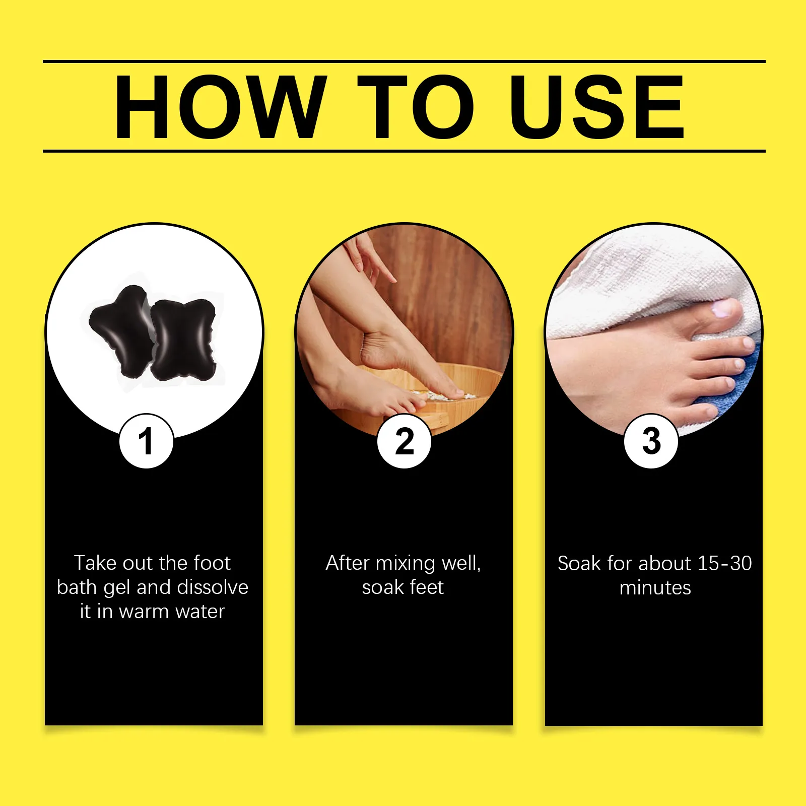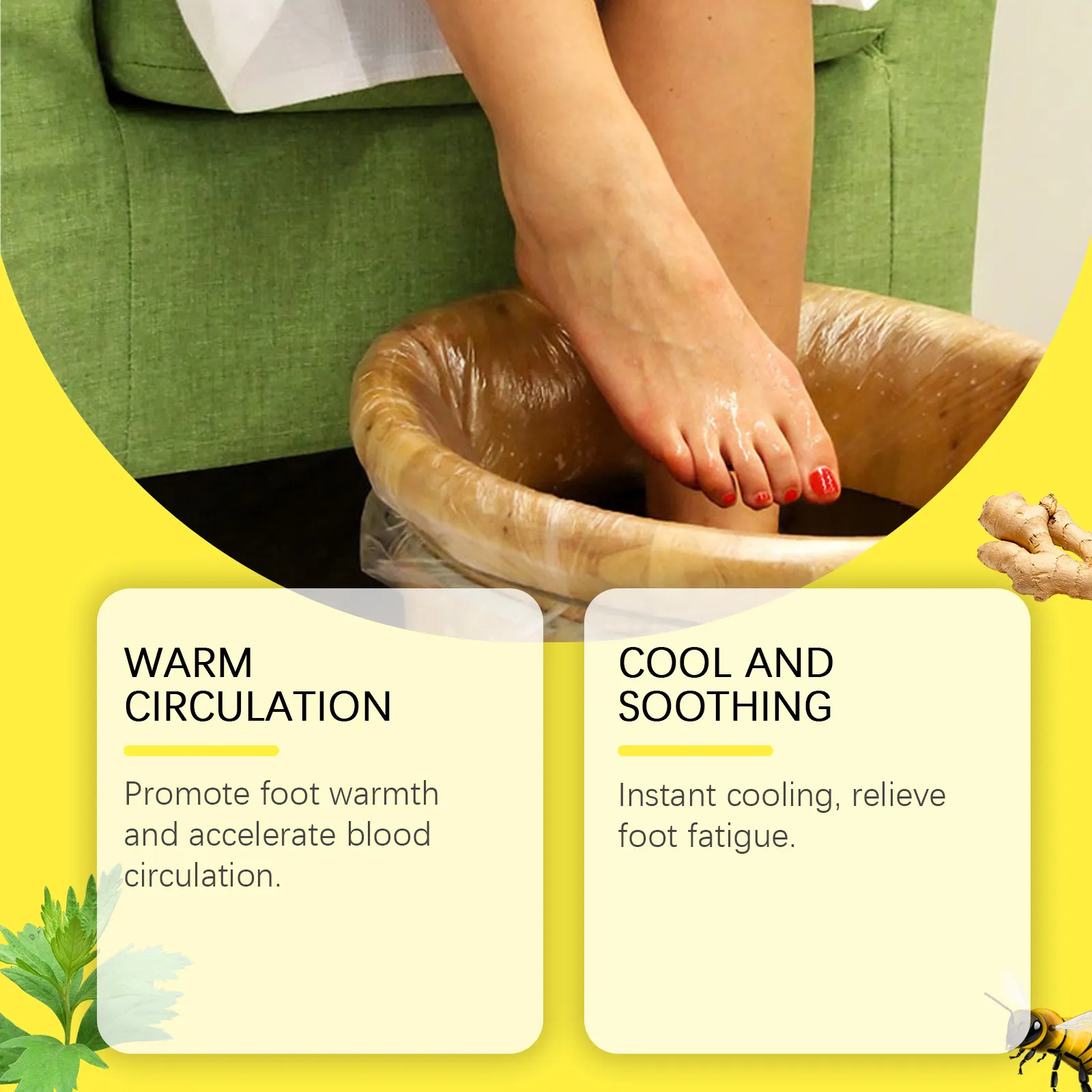Our foot bath beads contain wasabi leaf extract and mugwort extract. It can promote blood circulation in the feet, efficiently deliver nutrients and oxygen, increase body energy, help control blood pressure, strengthen bones, and keep the kidneys healthy. Its use method is very simple: take out the foot soaking gel, dissolve and stir evenly, soak the feet for 15-30 minutes or so, solution in warm water. It can also reduce foot discomfort and improve quality of life.