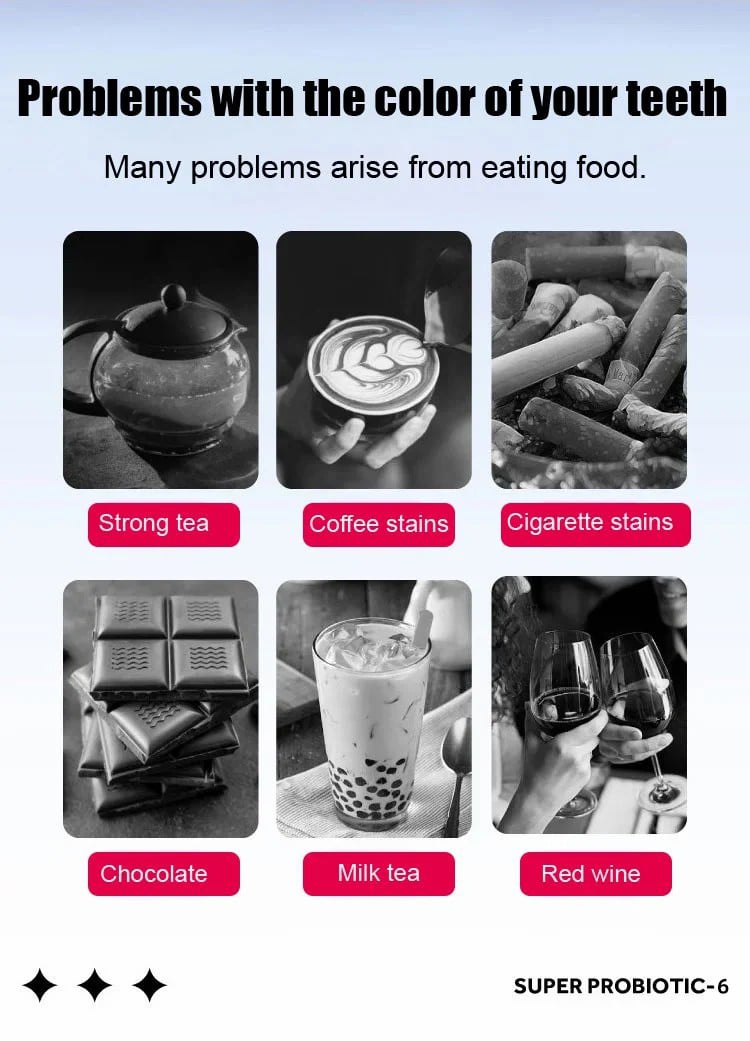 SP-6 Toothpaste gently removes surface stains caused by coffee, tea, and other foods, gradually revealing a brighter and whiter smile. Its