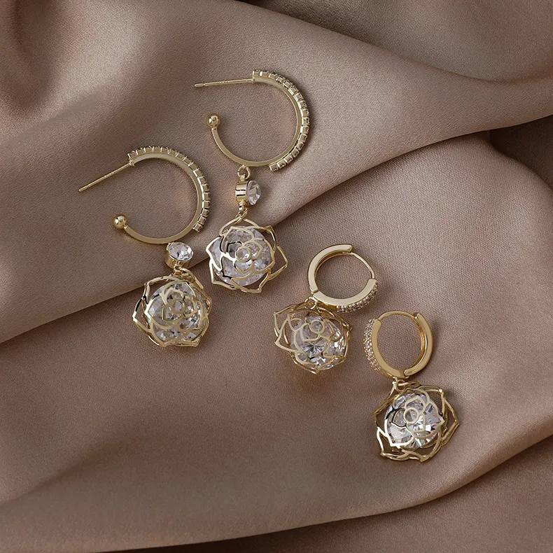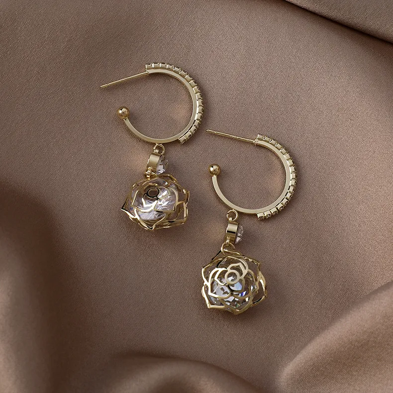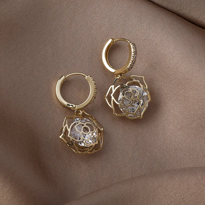 Sparkling Inlaid Zirconium Hollow Rose Zircon Earrings