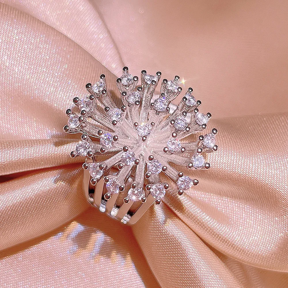Special-interest Design Light Luxury Zircon Hollow Out Snowflake Ring Women Simple All Match Jewelry Women