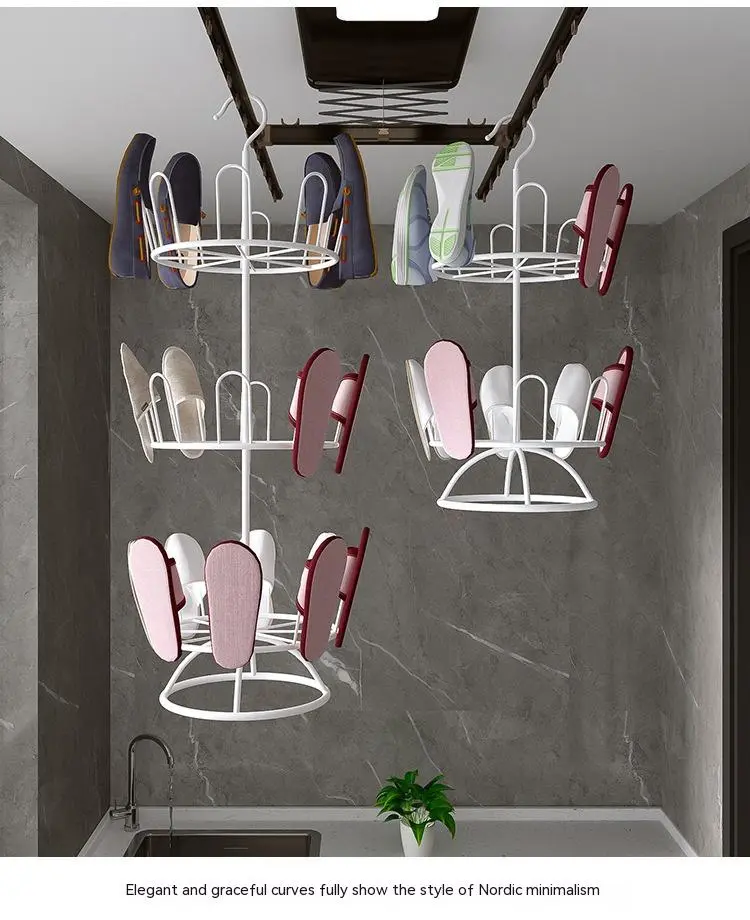 Space-Saving Design: Spinning shoe racks are designed to maximize vertical storage space. Their compact and slim profile
