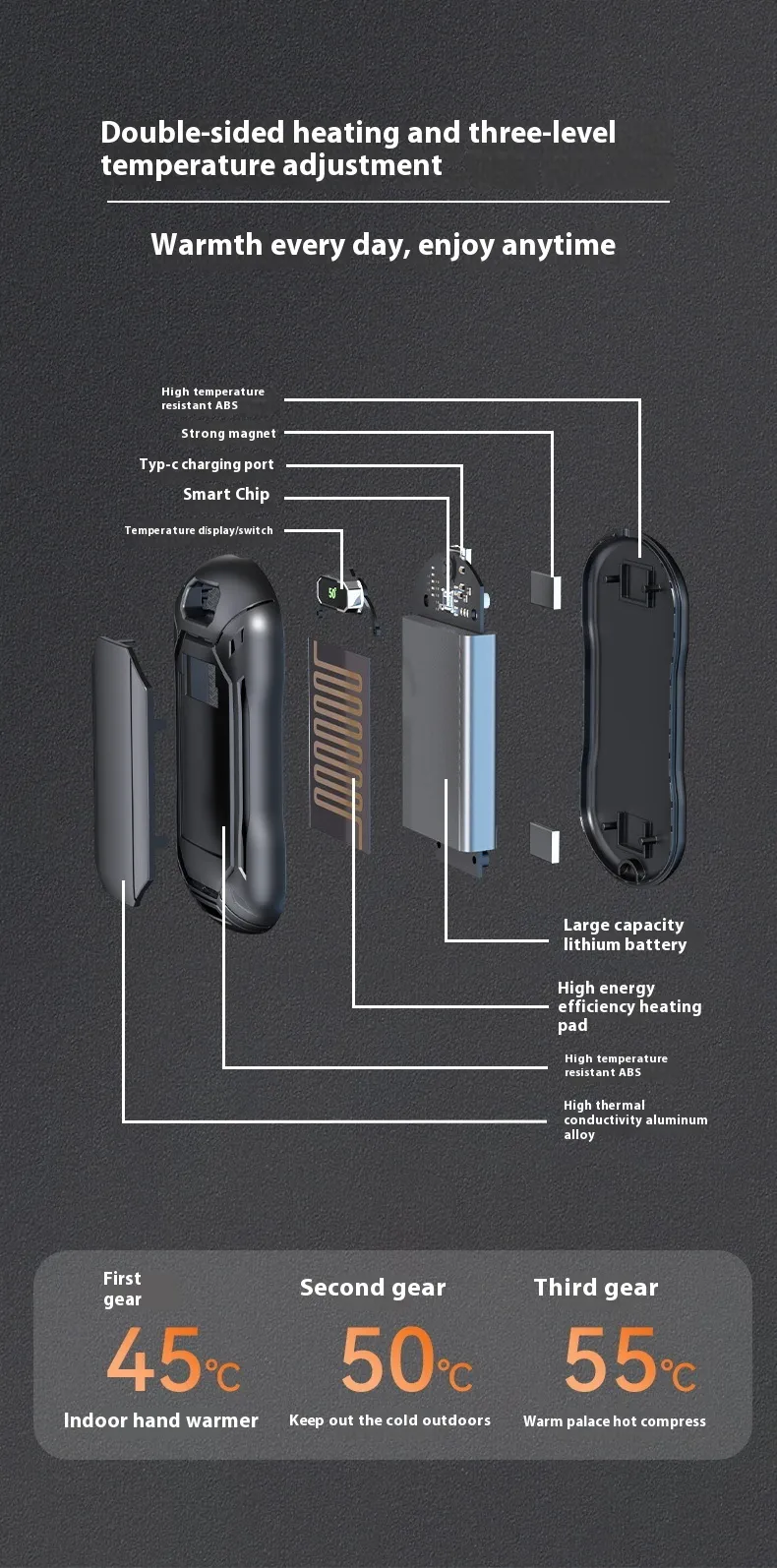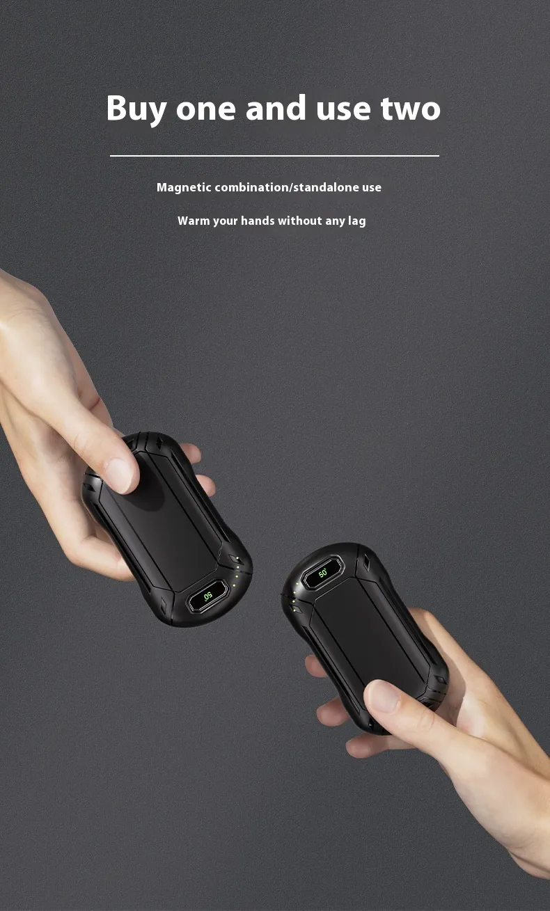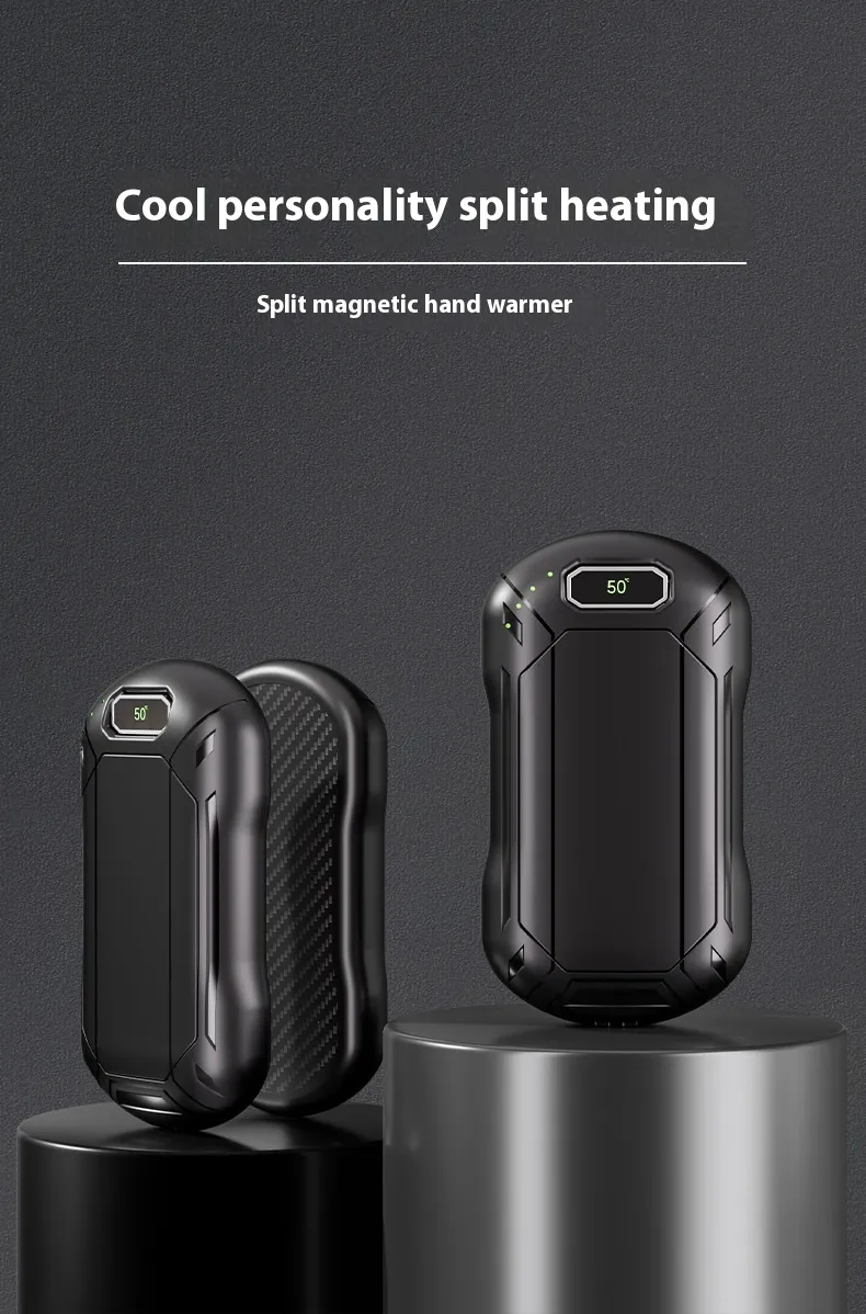- 2 Pack Split-Magnetic Design - Upgrade split-magnetic rechargeable hand warmers. Every electric hand warmer designed with one side for heating, one side for magnetic absorption. They can be combined into one, double-sided heating, or separate them to slide them into the pockets, hold one in each hand, share one heater with your family. It can be separated into the brim of the hat to warm the ears, in the two pockets of the coat, in the gloves, etc.