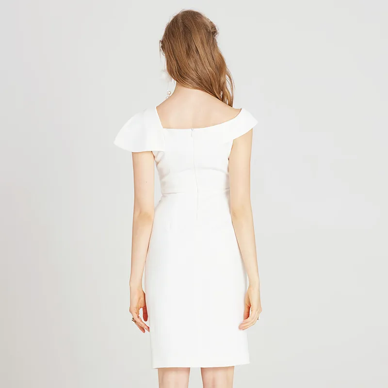 The Split White Dress is designed to flatter different body types. Its structured fit and form-enhancing design ensure that