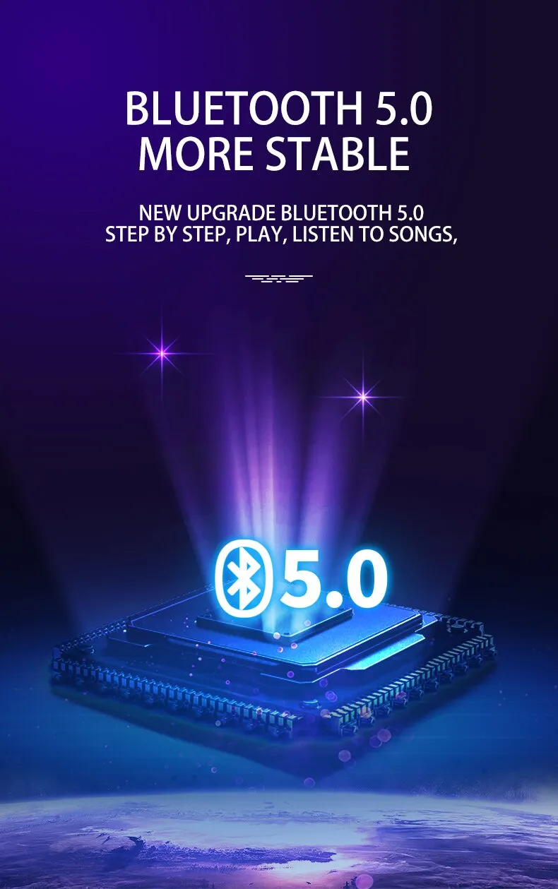 1. The latest Bluetooth 5.0 chip, stable transmission, listening to songs and playing games are not stuck.