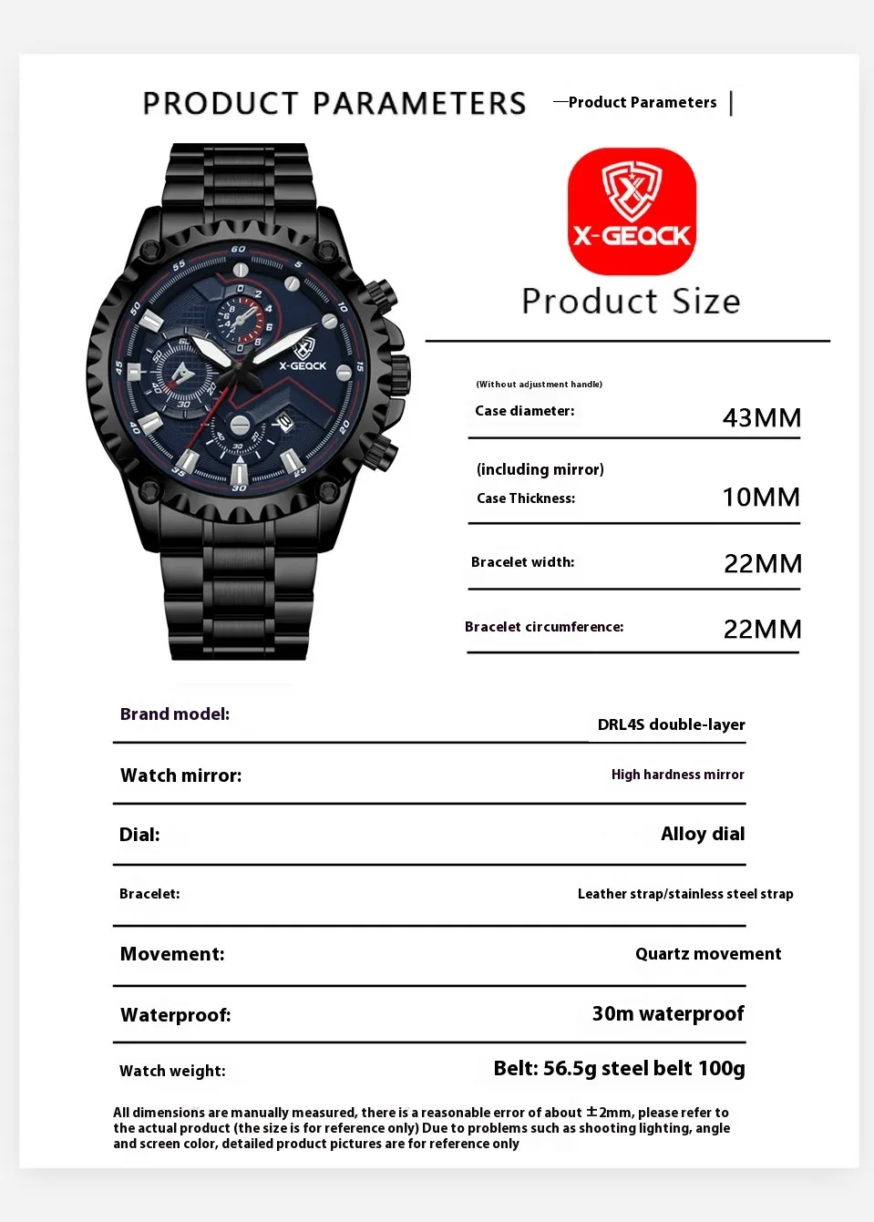 Powered by high-precision quartz movement, the watch offers reliable timekeeping with minimal maintenance. Quartz watches are known for their accuracy and durability, making them perfect for those who need a timepiece that stays in sync with their busy schedule. This reliable movement guarantees precise time, day in and day out.