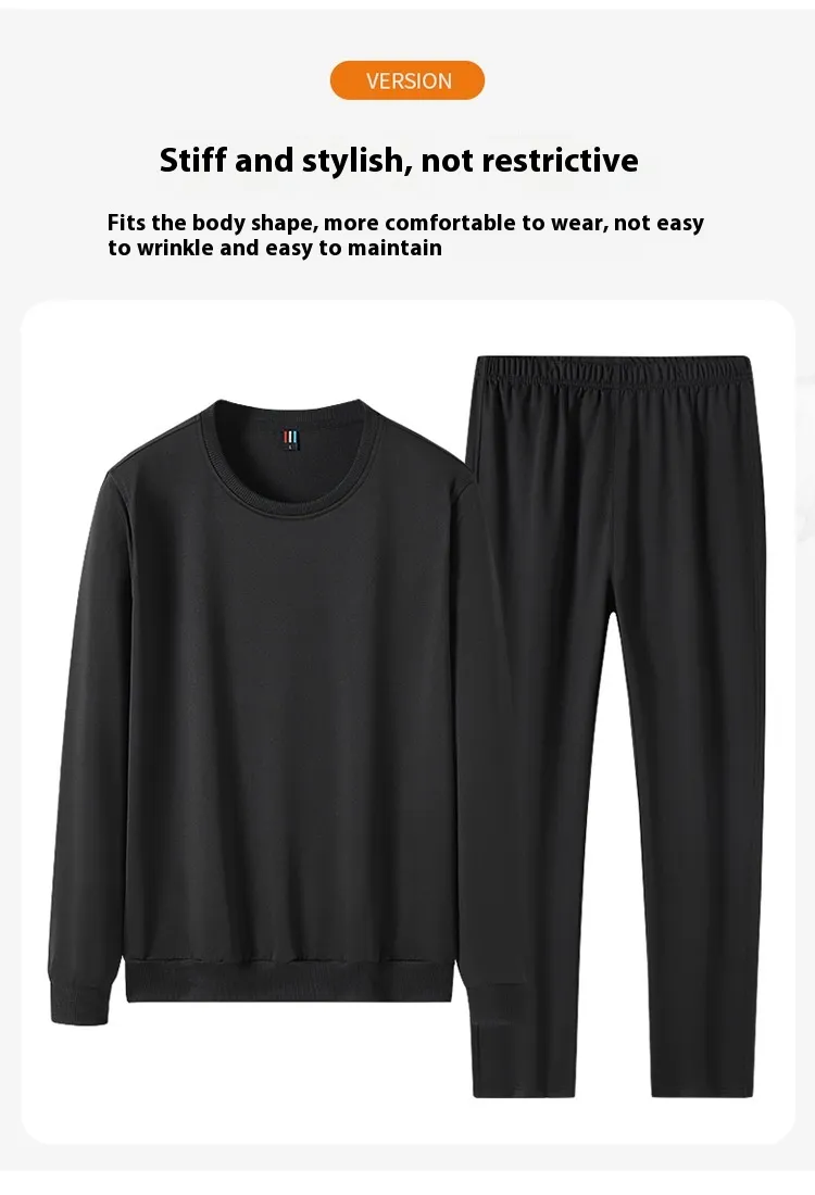 Designed without any metal parts, drawstrings, or pockets, this set is perfect for those who value simplicity, safety (great for airport or hospital wear), or a clean-lined look. The pullover sweatshirt features a smooth, tag-free interior and soft cuffs for a snug, cozy fit, while the matching trousers offer a relaxed fit with an elastic waistband for all-day comfort.