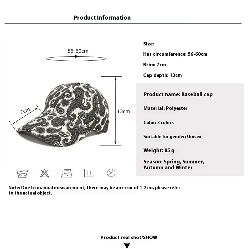 Product Description: Spring and Summer Men and Women Baseball Cap Paisley Pattern Printed Baseball Cap