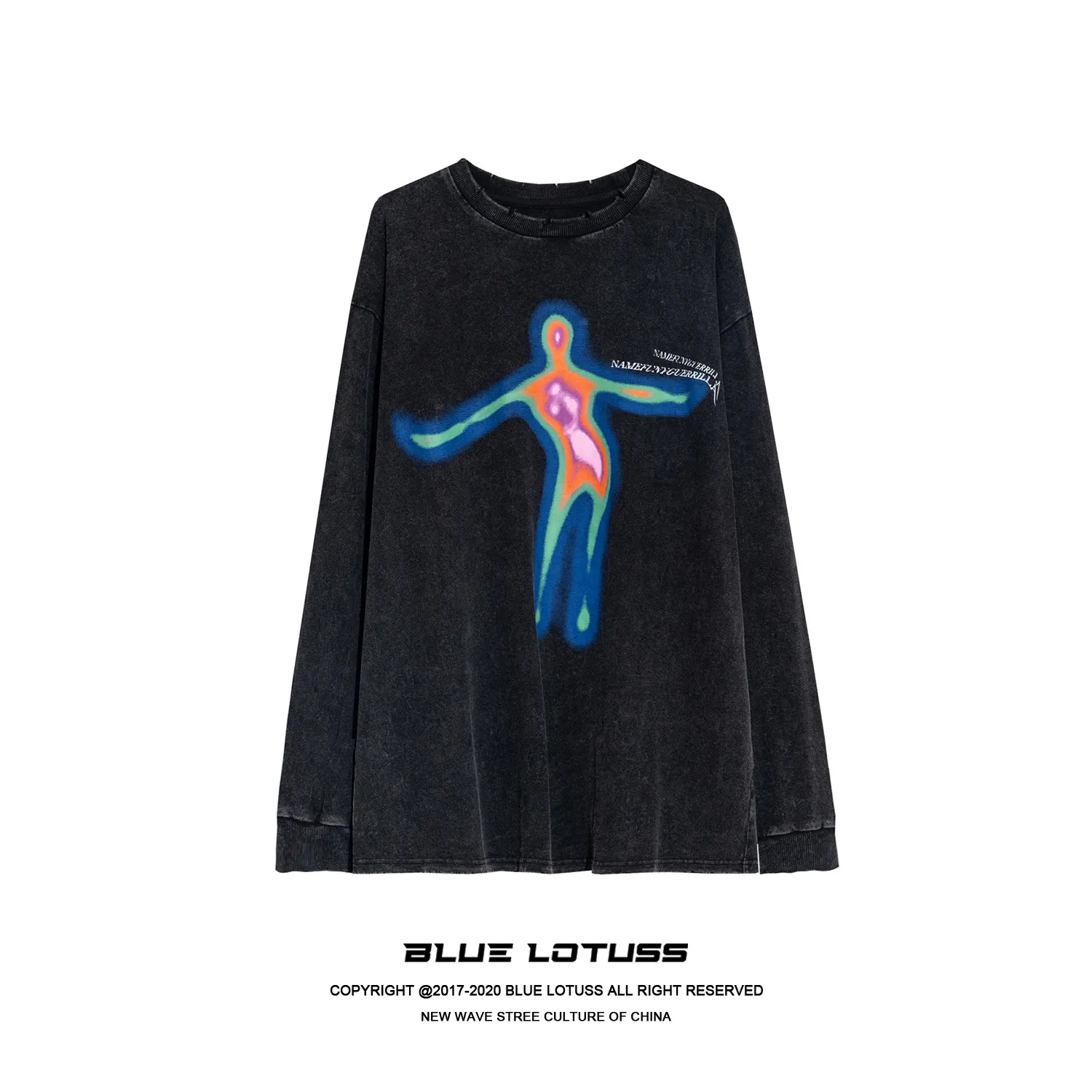 Spring Loose Old Letters Printed Long-Sleeved T-Shirt