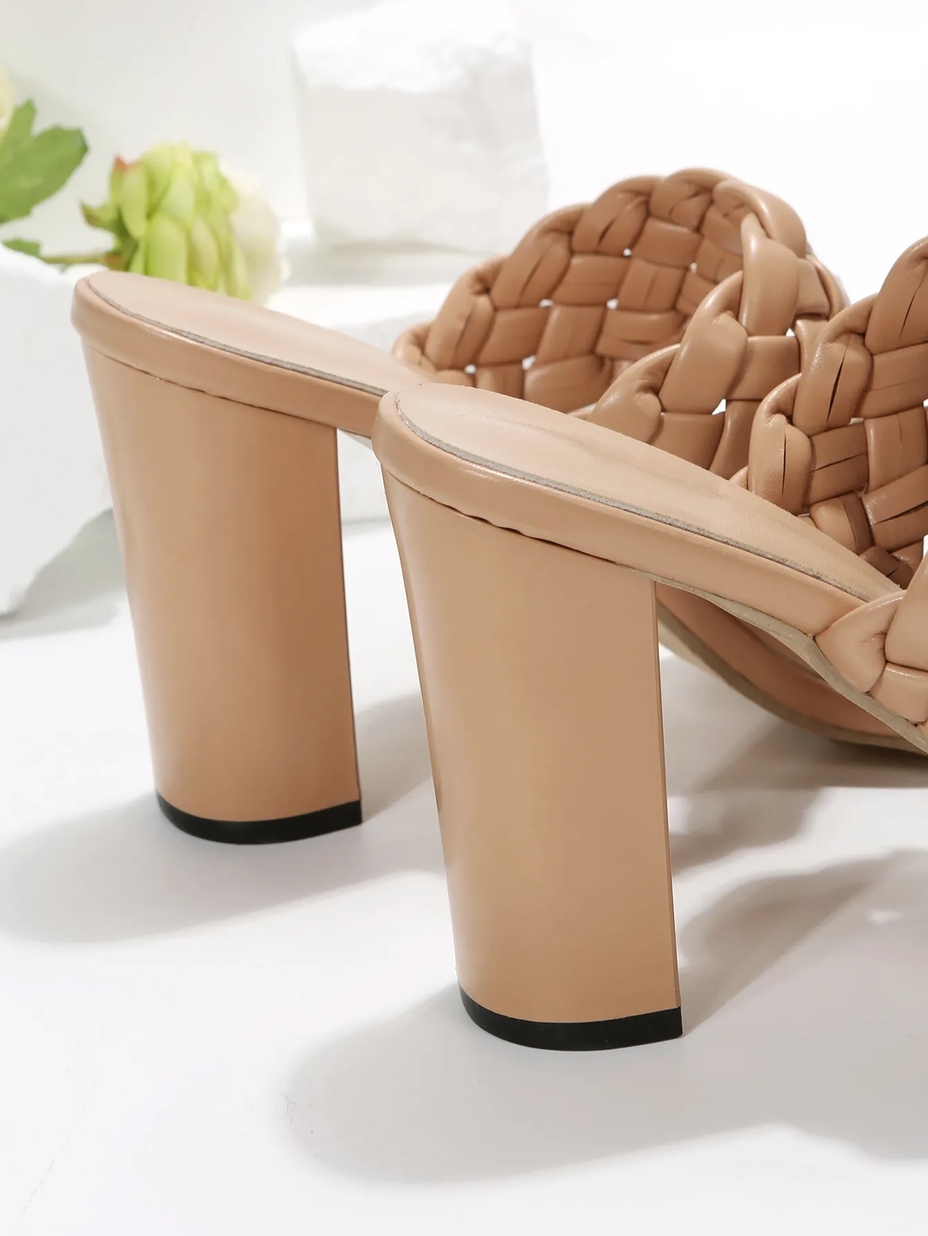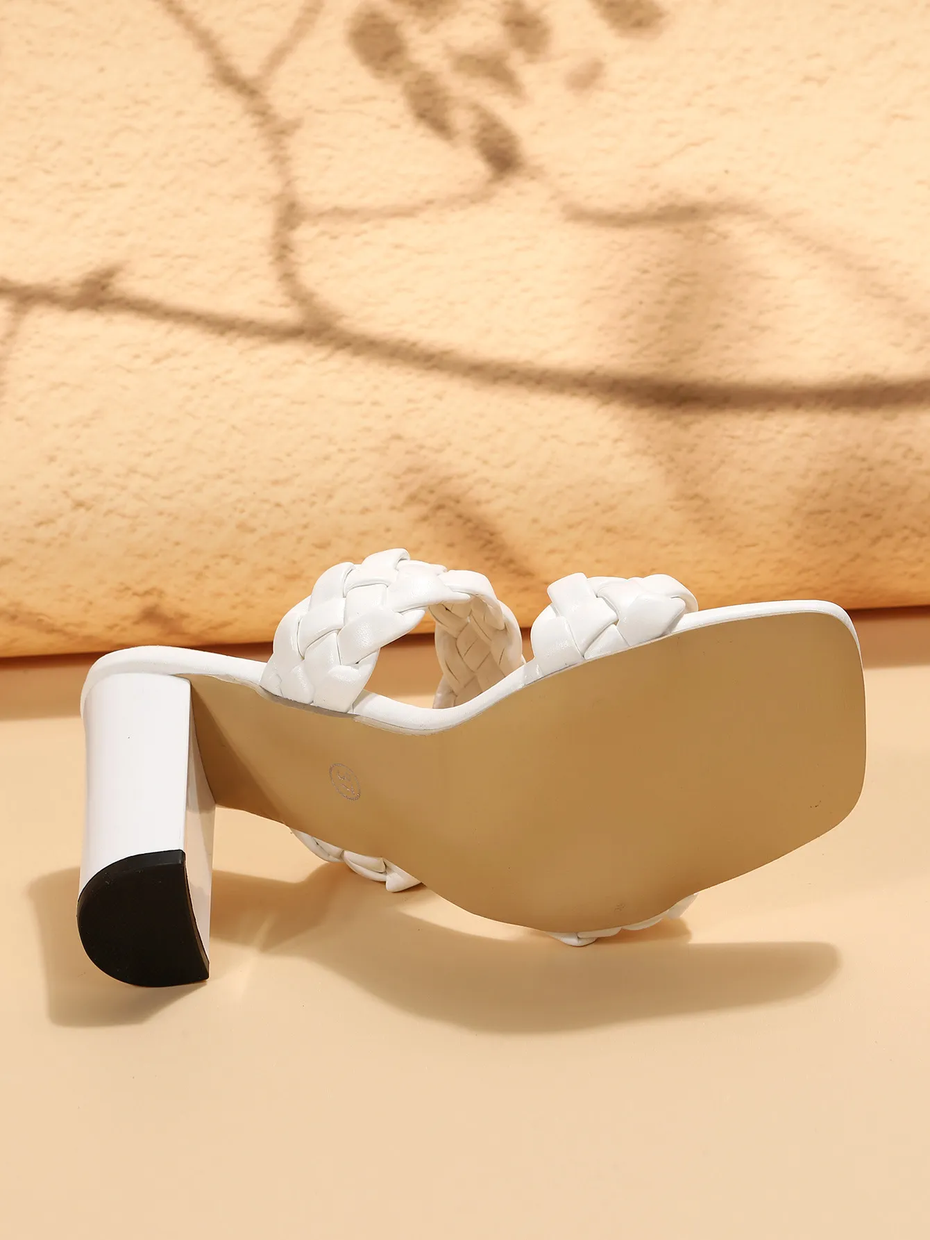 Square Toe Flip-flops Chunky Heel Woven Twisted Slippers