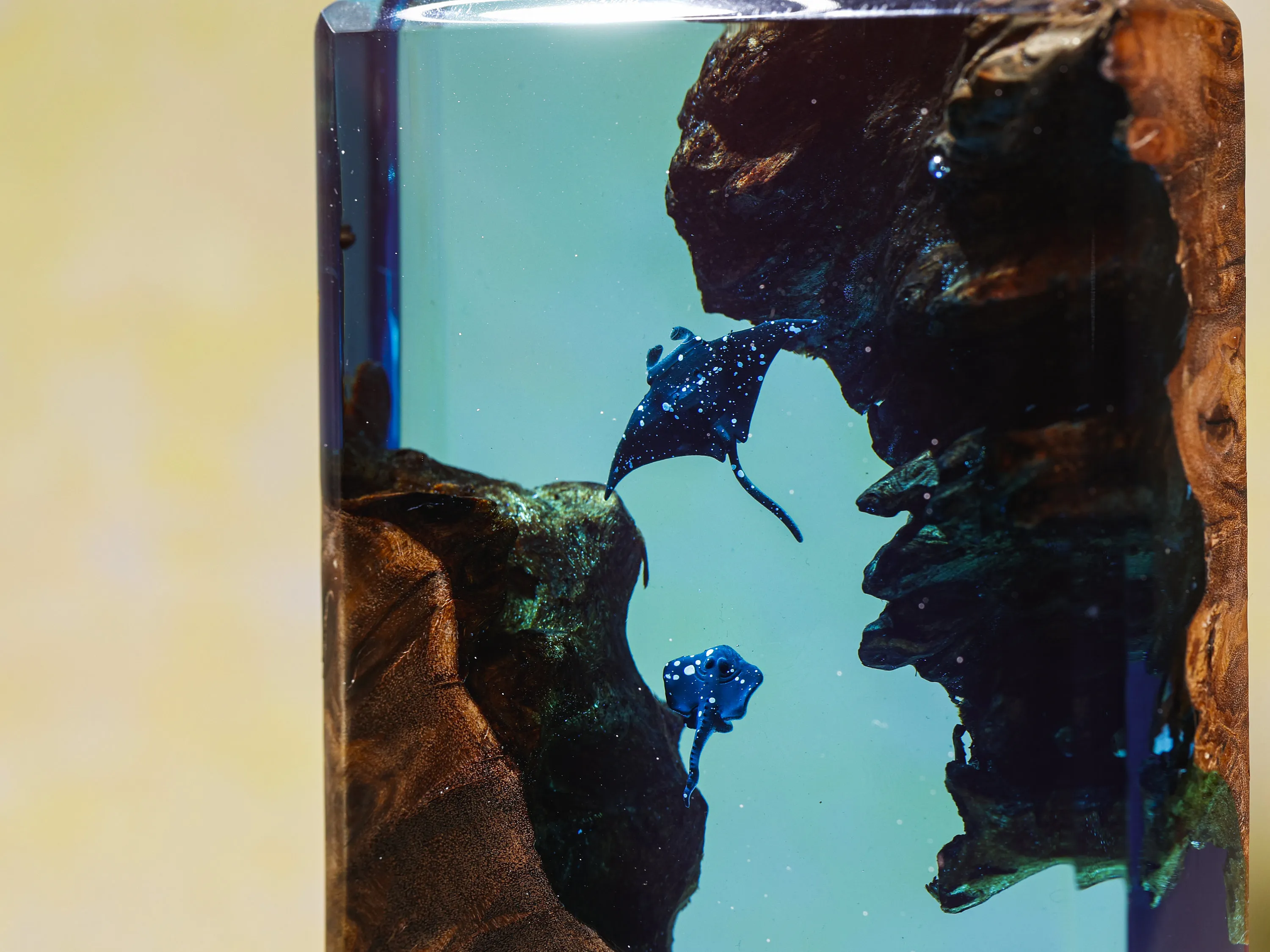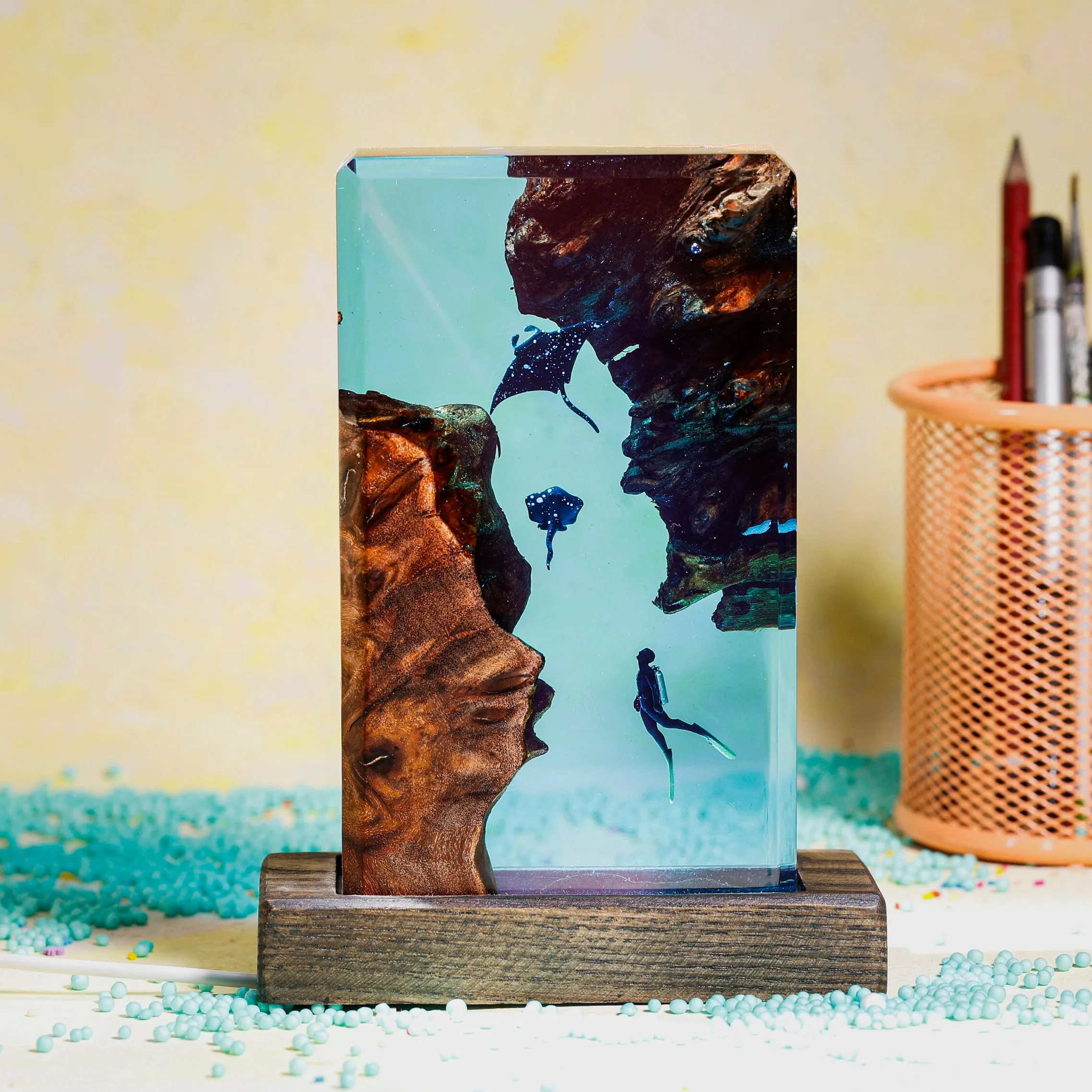 The Square Wood Resin Ocean Small Night Lamp is a stunning combination of natural wood and resin, designed to bring a calming oceanic vibe to your space. Perfect for coastal-themed décor, this small night lamp features a mesmerizing design that captures the beauty of the ocean with its vibrant blue resin encased in solid wood. The soft, ambient LED light glows through the translucent resin, creating a peaceful and soothing atmosphere, making it perfect for bedrooms, living rooms, or any space where you want to add a touch of natural elegance.