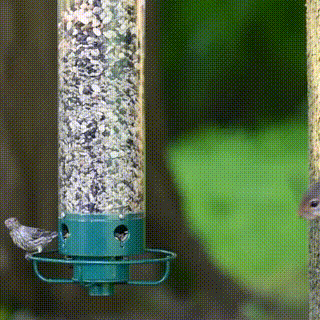 A variety of birds use the feeder, including cardinals, chickadees, finches, flickers, goldfinches, grackles, grosbeaks, jays, juncos, kinglets, nuthatches, redpolls, siskins, sparrows, starlings, titmice, towhees, woodpeckers, and wrens. The Feeder works with mixed seed, peanut chunks, safflower seed, sunflower kernels, and cracked corn, though it works best with sunflower seeds, a favorite of almost every backyard feeder bird.