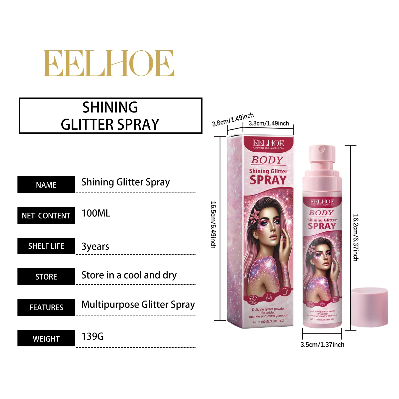 use method is very simple: 1. Shake the spray well before use; 2 Spray evenly on your body, hair, face, or clothing where you want to shine.