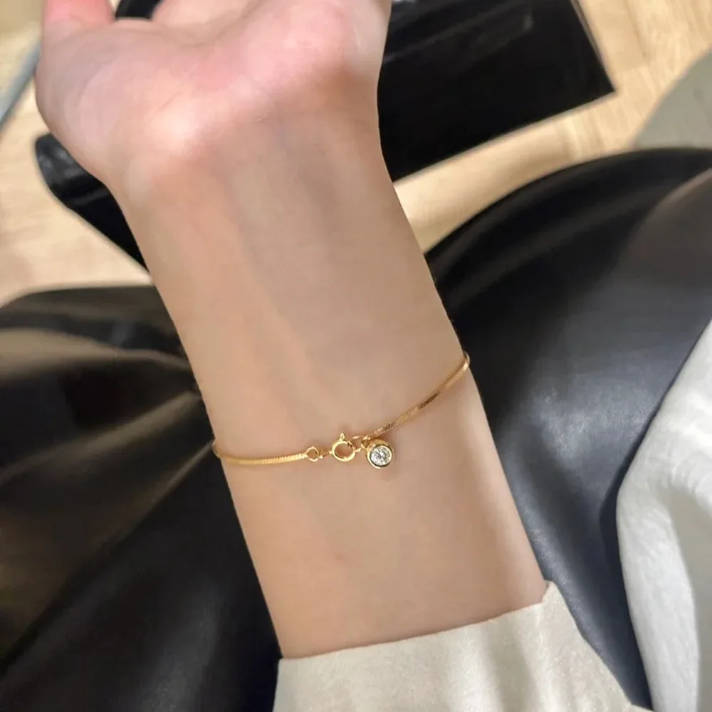 The minimalist design of the bracelet makes it a versatile accessory that can be worn with almost any outfit. The clean, simple lines of the blade chain are complemented by the sparkling zircon charm, creating a piece that is both contemporary and timeless. Its understated elegance makes it suitable for a wide range of occasions, from casual outings to more formal events.