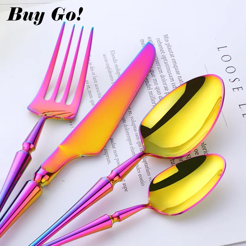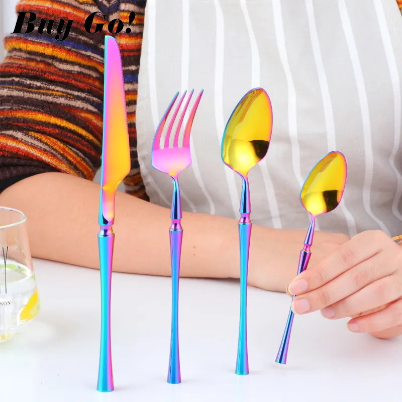4pcs / lot Stainless Steel Western Cutlery Set, Rainbow Dinner Knife Teaspoon Salad Forks Dinnerware Dinnerware Set Christmas Gift