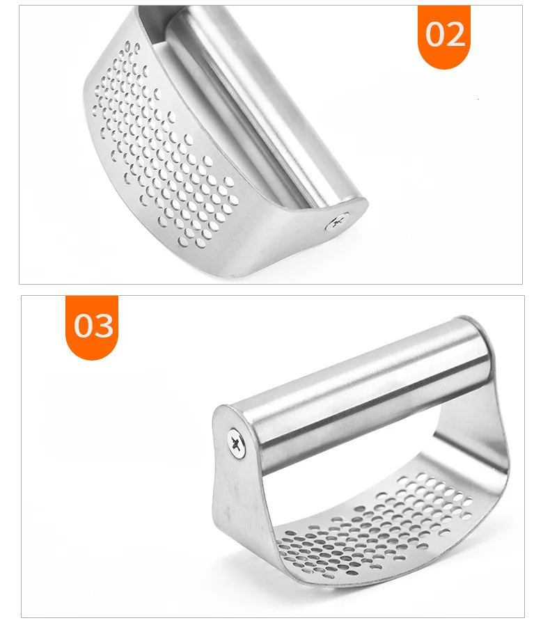 The garlic press is made from premium stainless steel, which offers excellent strength and resistance to rust and corrosion. This material ensures that the garlic press remains durable and functional for years, withstanding the pressure of crushing garlic cloves without bending or breaking.