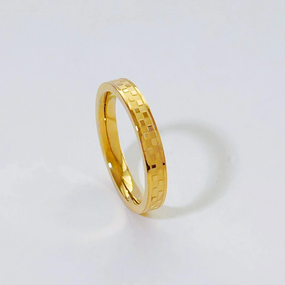 Key Features of Stainless Steel Gold Color Chessboard Grid Thin Finger Rings