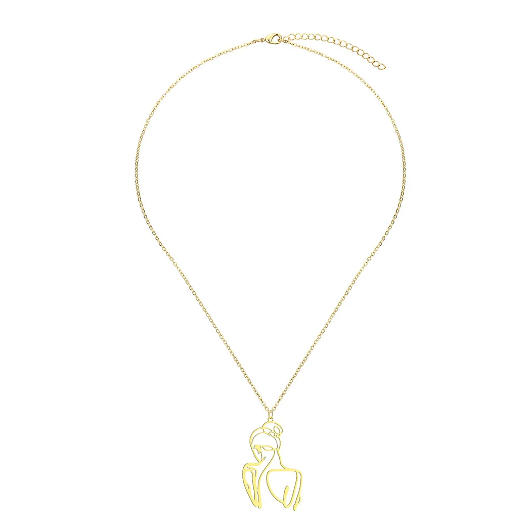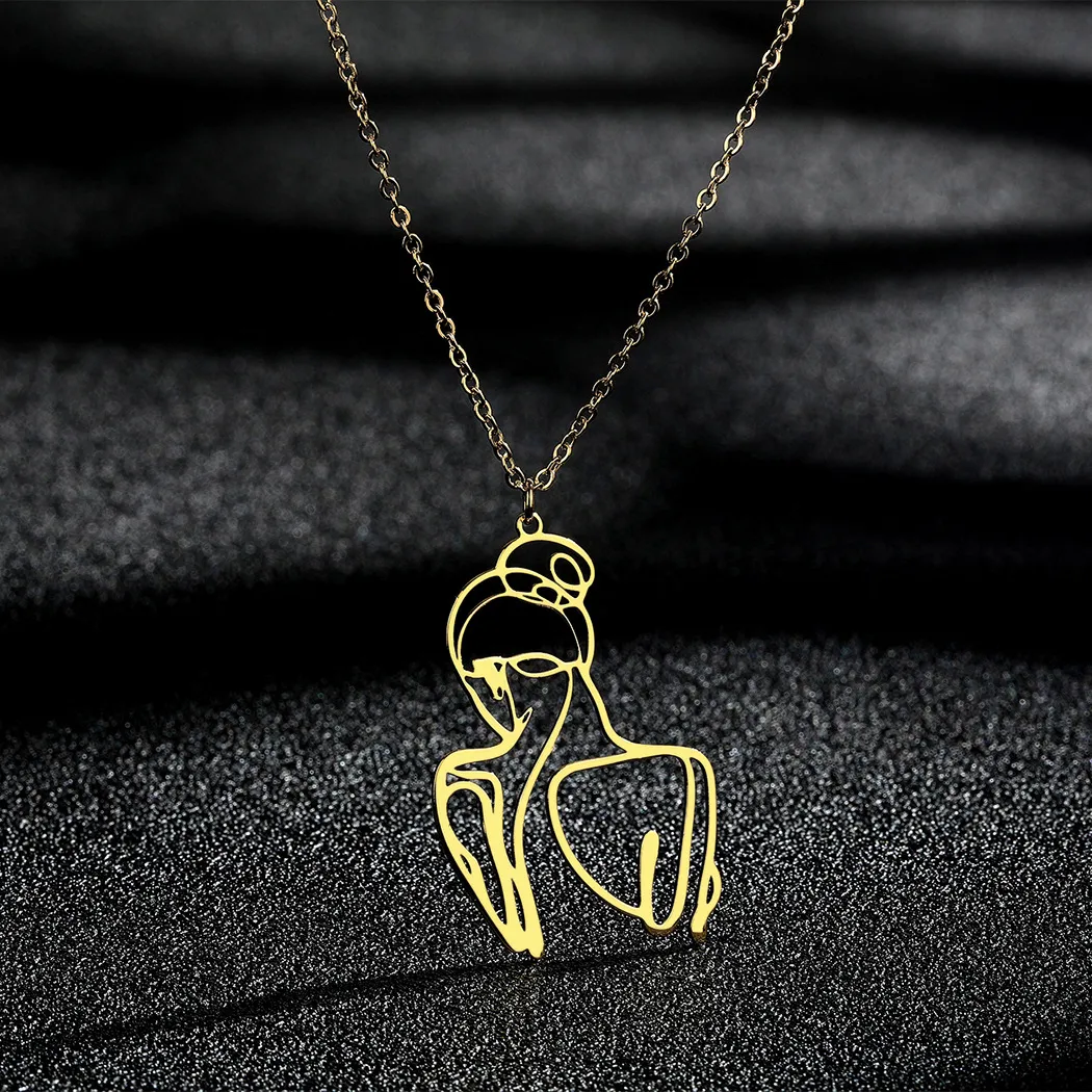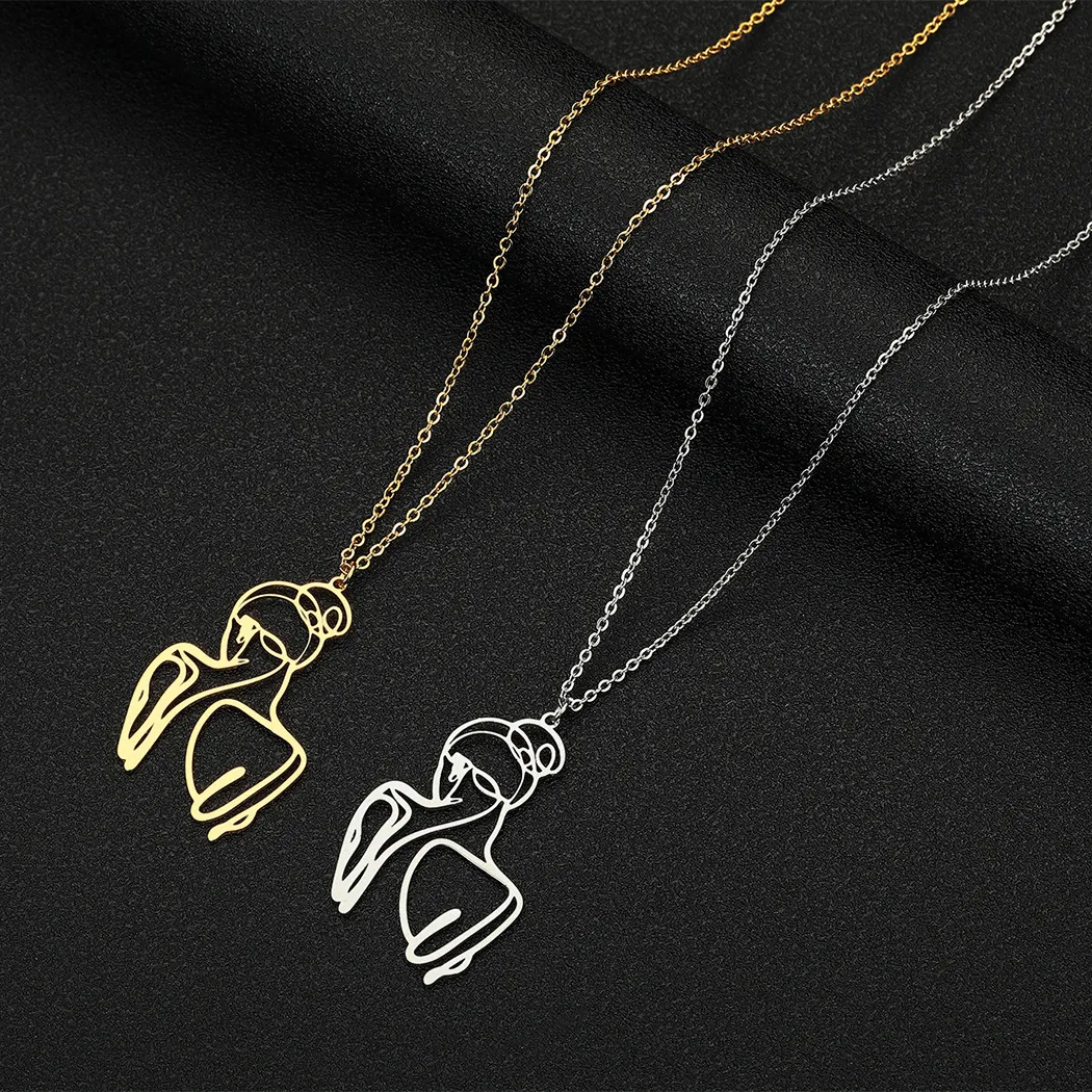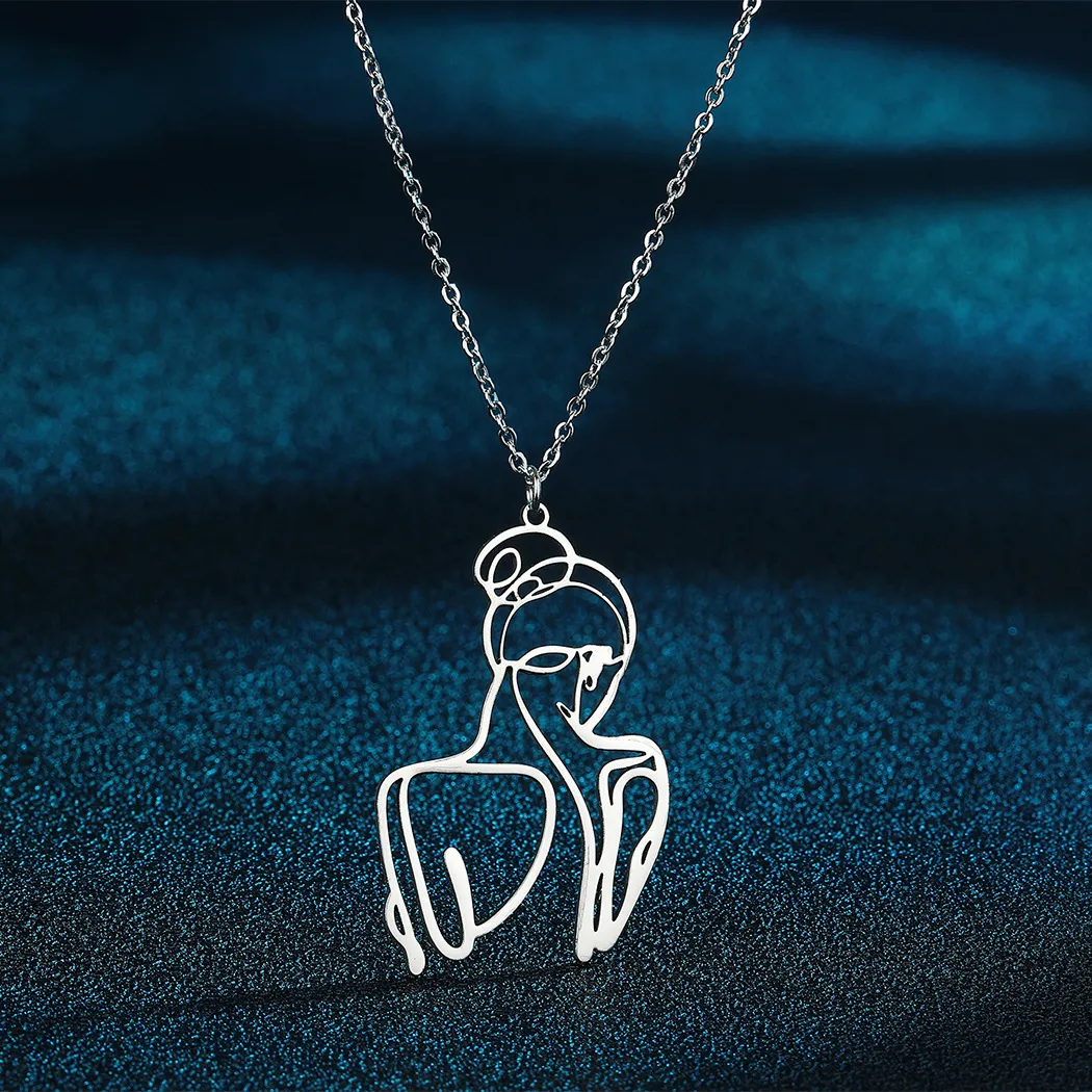 Stainless Steel Mandala Crescent Pendant Necklace
