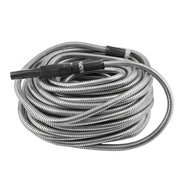 The Stainless Steel Metal Garden Hose is the ultimate solution for those seeking a durable, flexible, and long-lasting hose. Its heavy-duty stainless steel build ensures that it can handle tough outdoor tasks, while its lightweight and kink-free design make it a breeze to use. Invest in the Stainless Steel Metal Garden Hose today and enjoy years of hassle-free watering and outdoor cleaning.