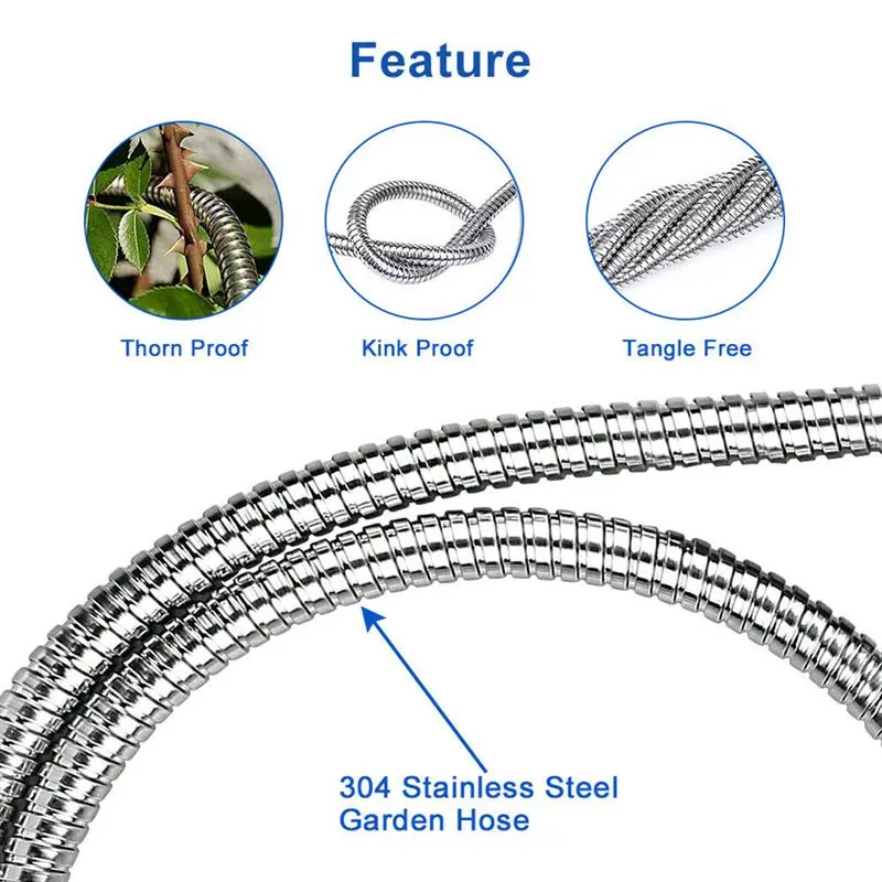 The Stainless Steel Metal Garden Hose is the perfect addition to your gardening toolkit, providing a reliable and long-lasting solution for watering your plants, washing your car, or tackling any outdoor cleaning task. Made from high-quality stainless steel, this hose combines superior durability with flexibility, making it an essential tool for both seasoned gardeners and homeowners alike.