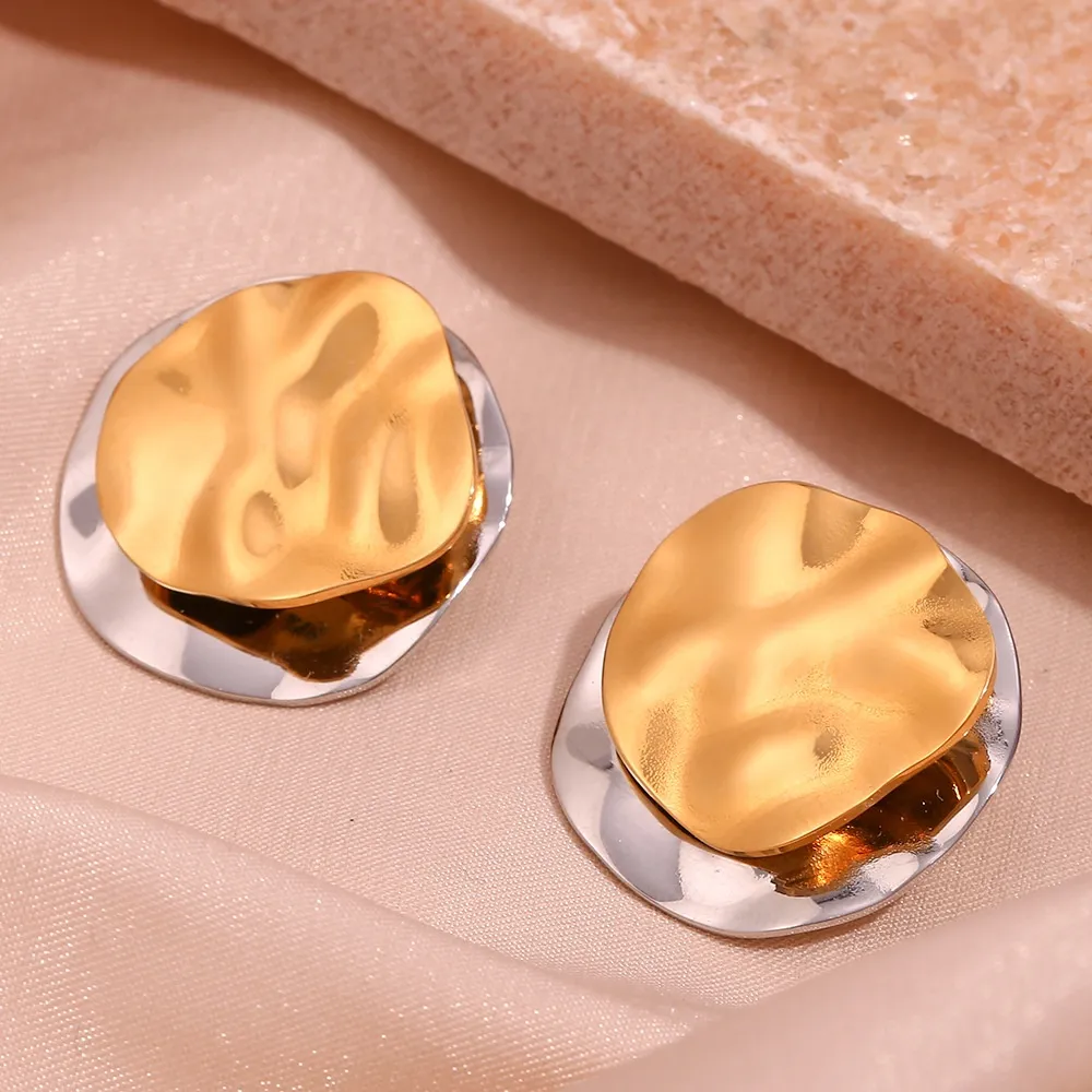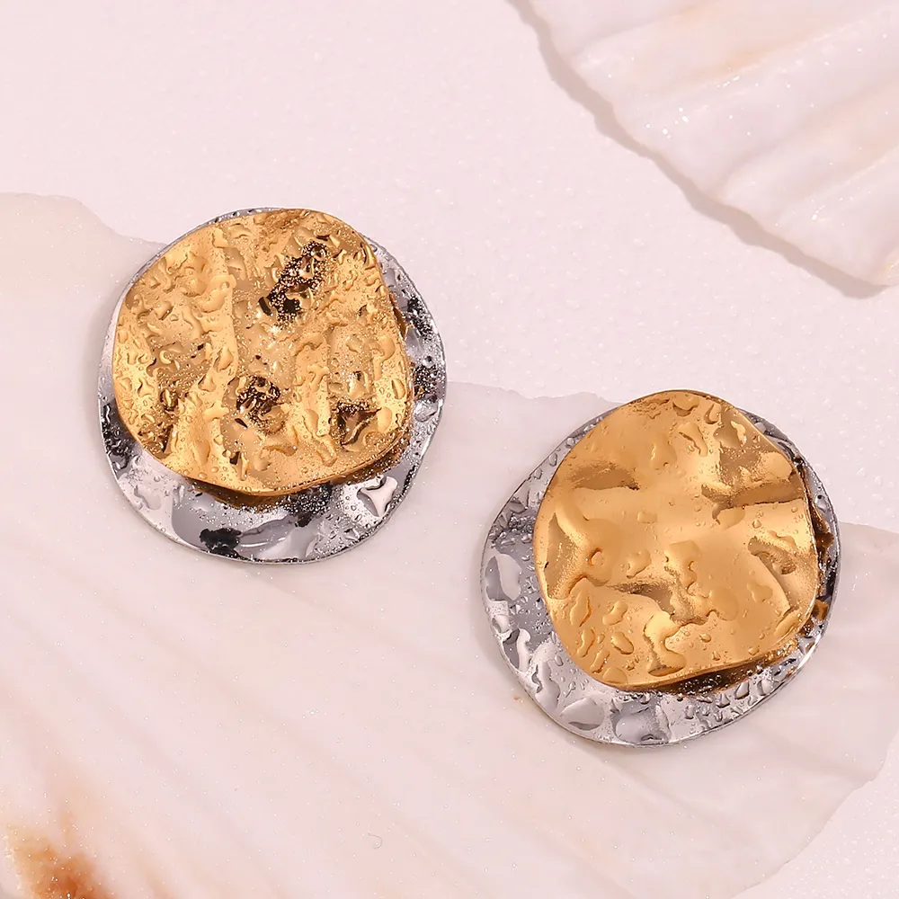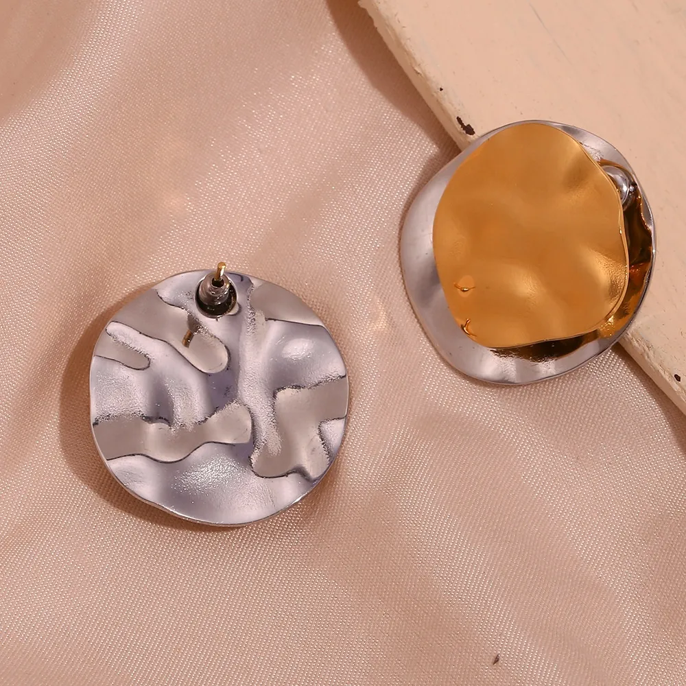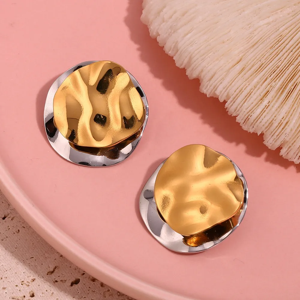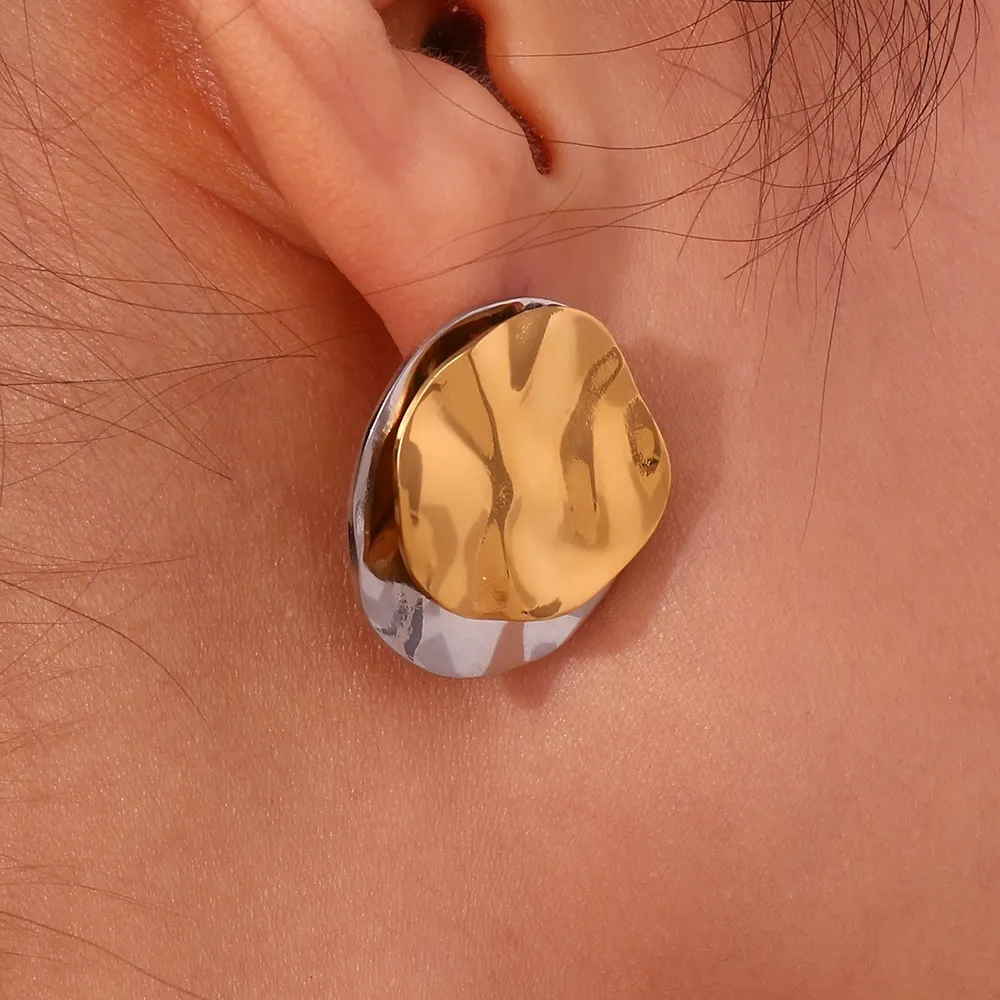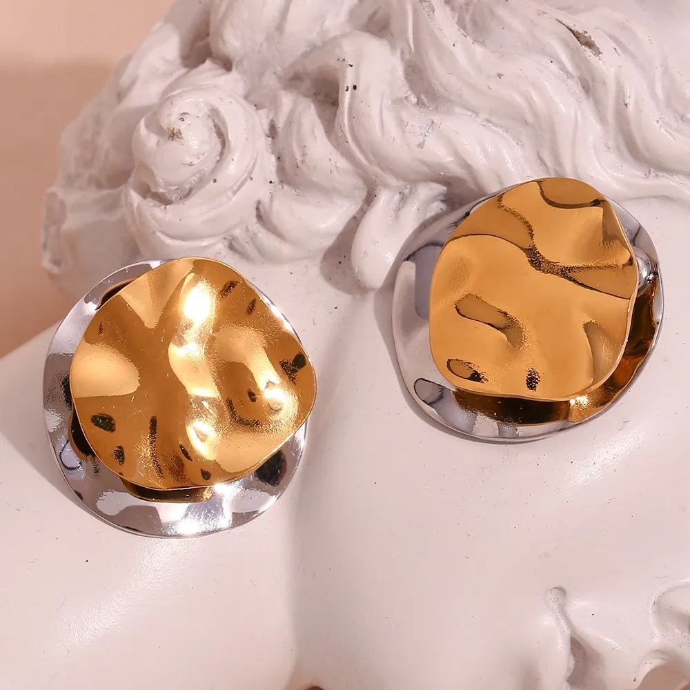 Stainless Steel Plated 18K Irregular Double Layer Color Matching Round Piece Ear Studs Female