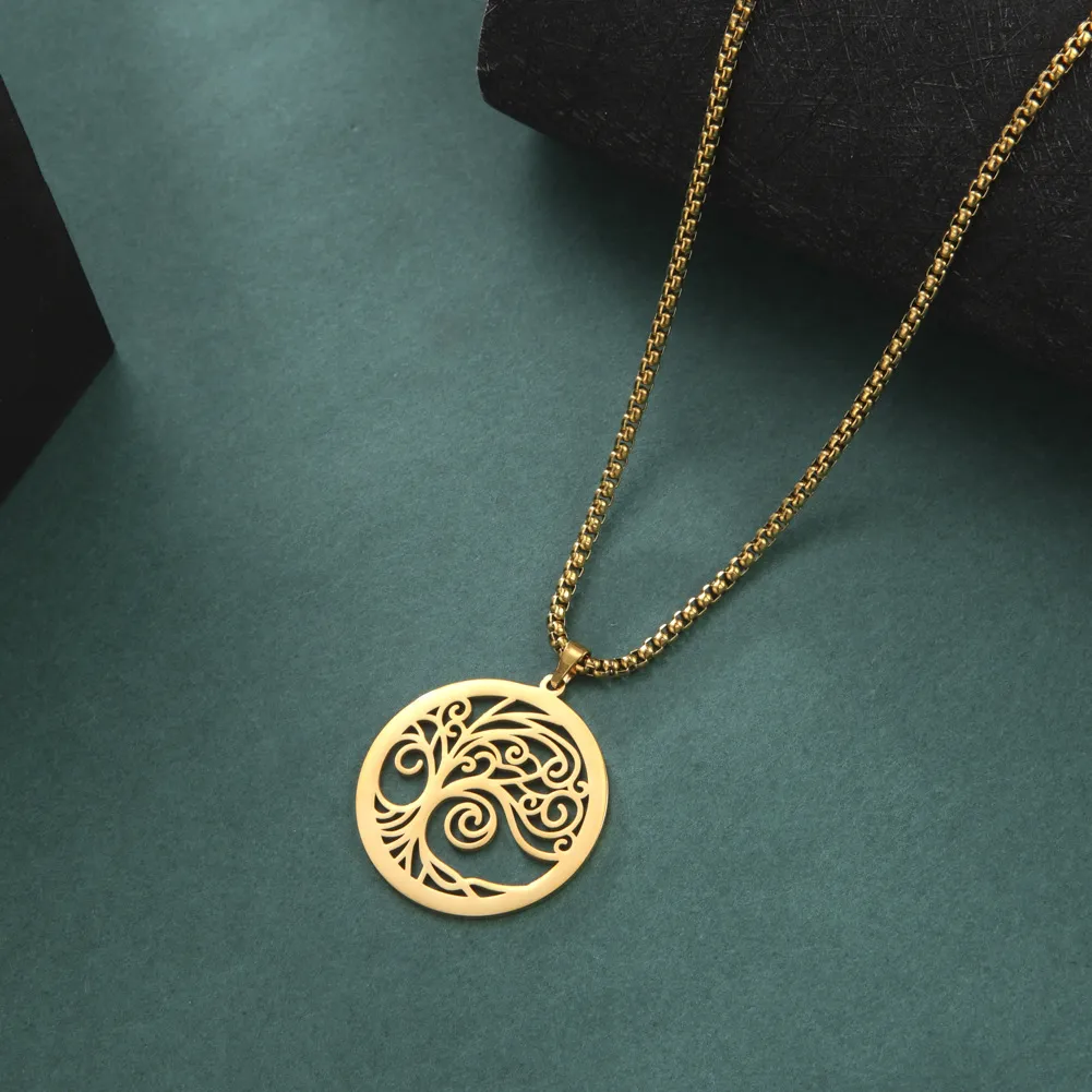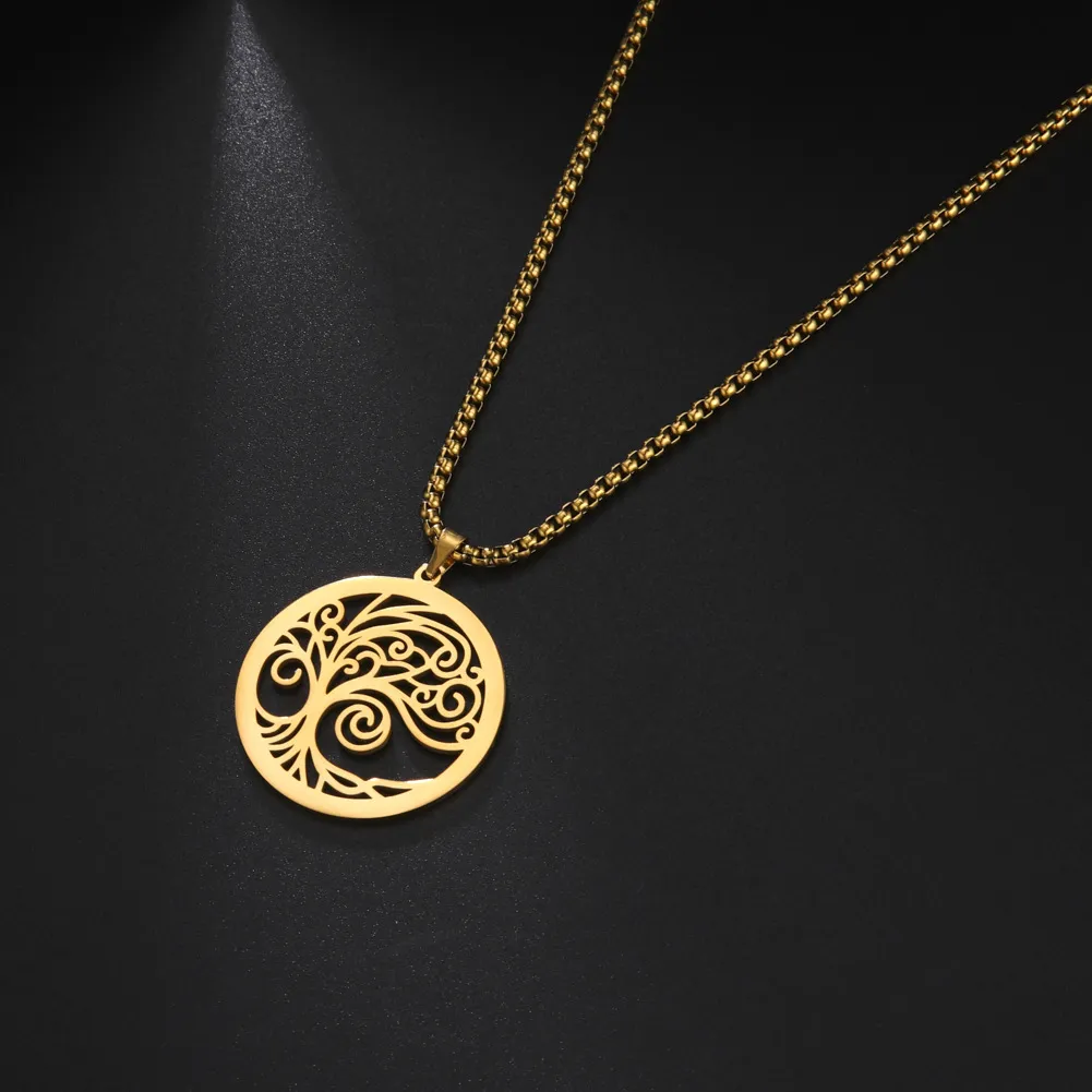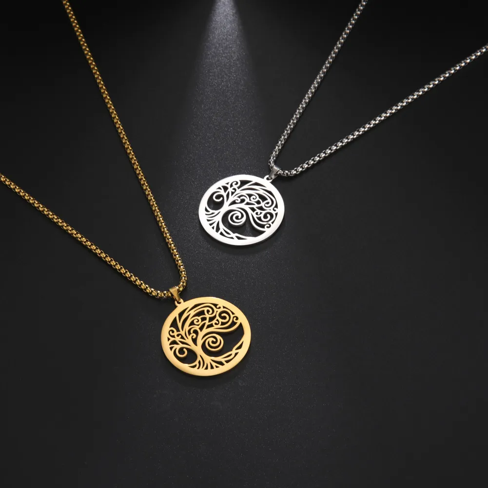 Stainless Steel Ring Hollow-out Side Bristle Tree Necklace